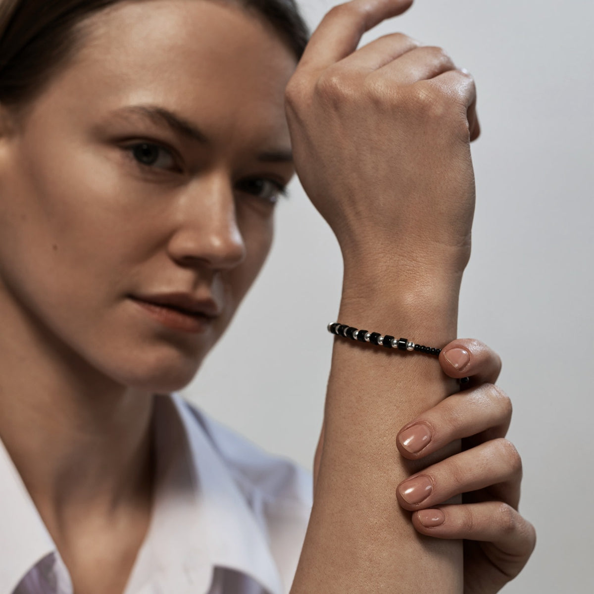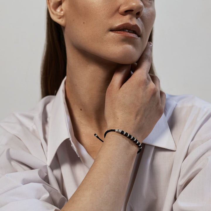 Black Onyx Stone And Silver Women Rope Bracelet - Onyx Gaia