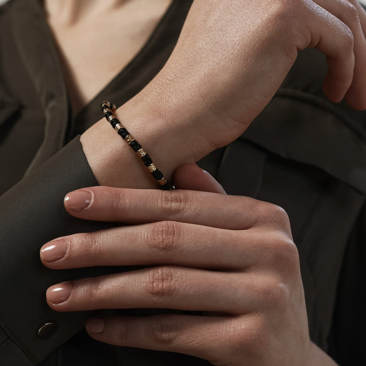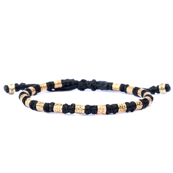 This women's bracelet features vermeil gold beads (a 1-micron thick layer of gold plated over a silver base) on a vegan-friendly waxed cord.