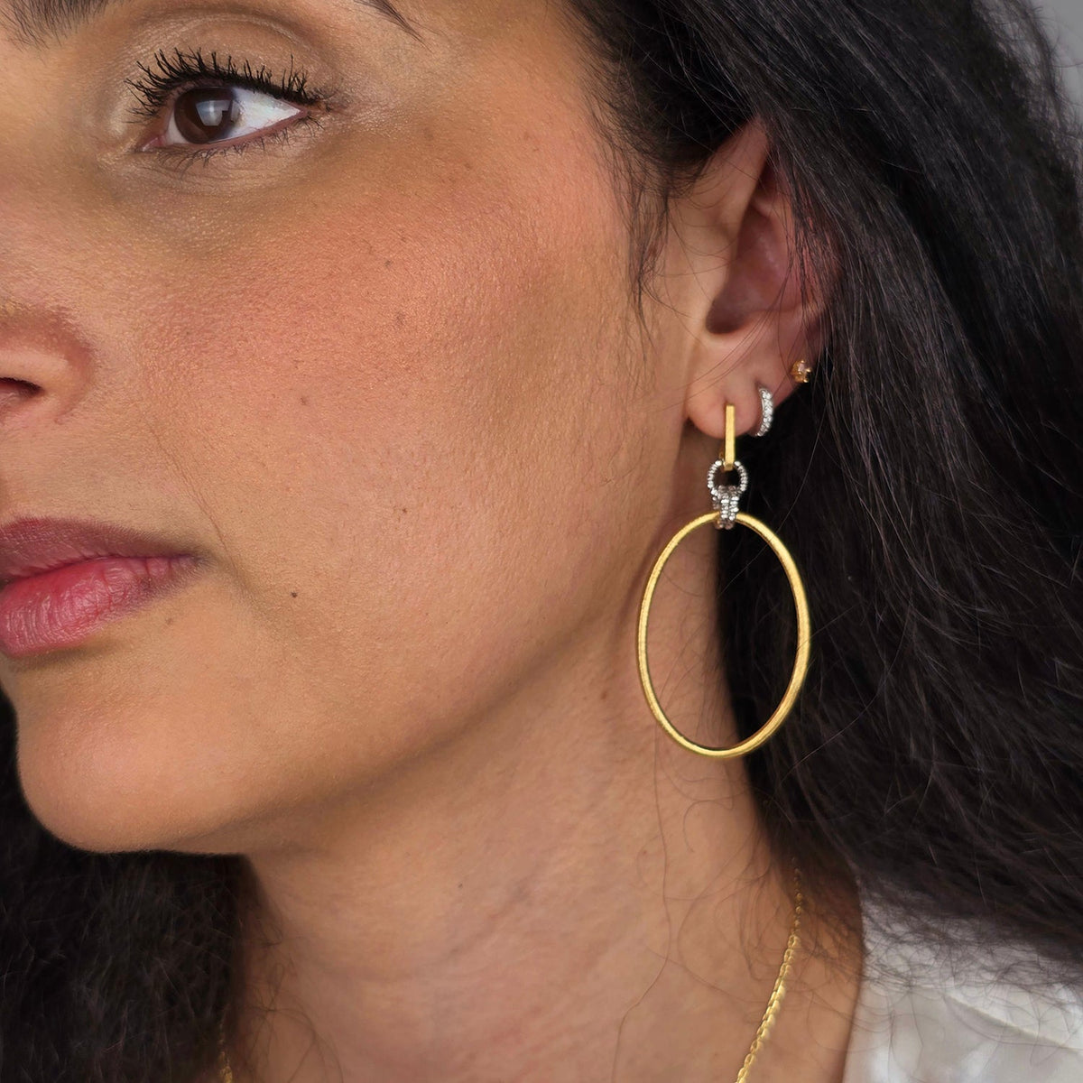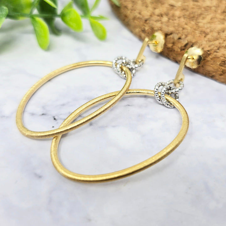 Elegant Two-Tone Diamond Cut Circle Drop Earrings With Gold-Plated Satin Finish
