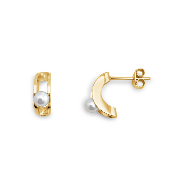 These hoops are made from 14k yellow gold and feature Akoya pearls.