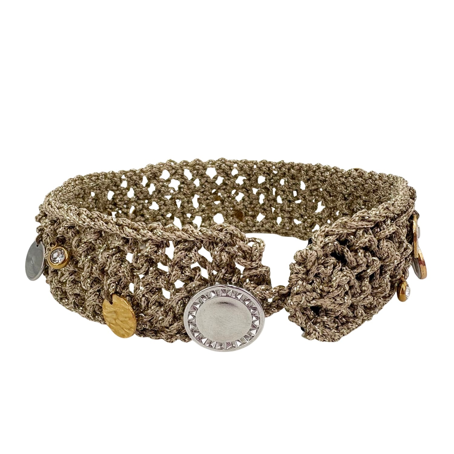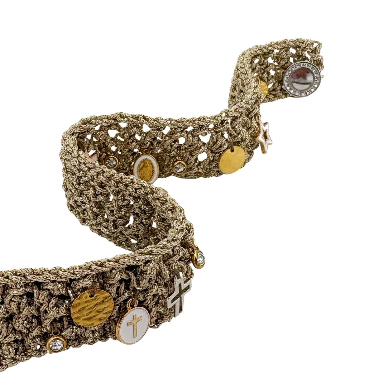 This bracelet is made of 925 Sterling Silver detailed with 18k Gold Plated/Chrysolite and Moon Gemstones.