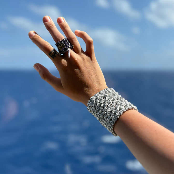 The Mesh Stitch Bracelet by Hilo De Mar is a timeless, hand-knitted piece. Meticulously crafted in Madrid, it embodies a conscious lifestyle with ethical and sustainable practices. The lightweight and elastic design is perfect for everyday use, seamlessly blending traditional hand-knitting techniques with a contemporary design.