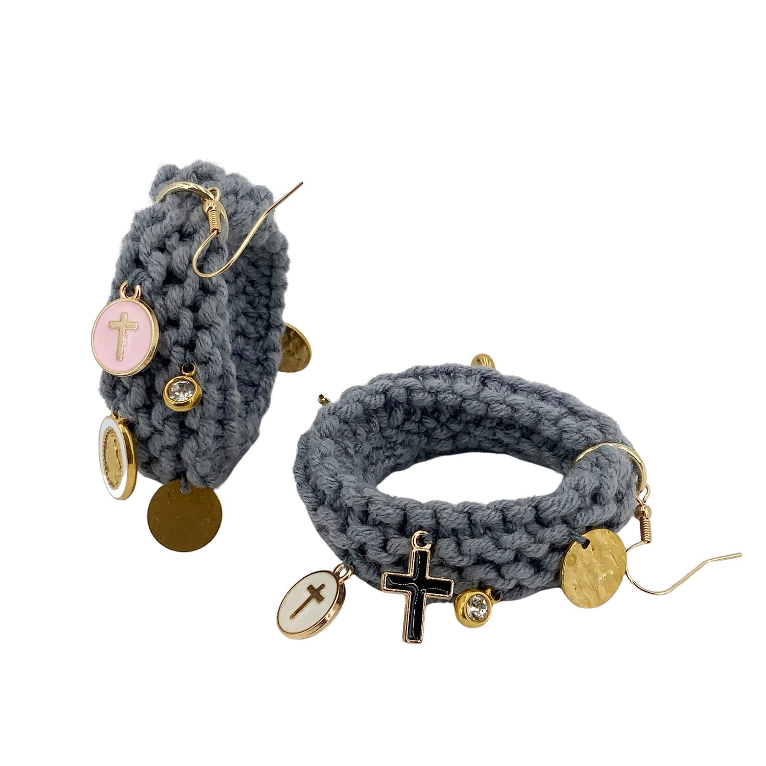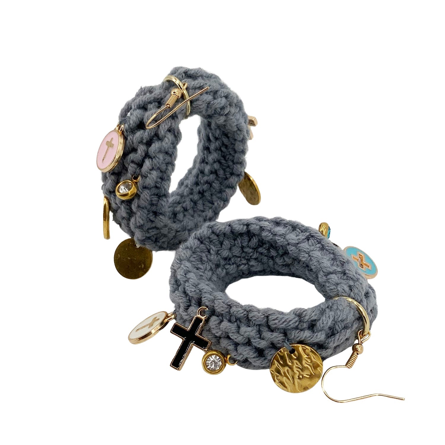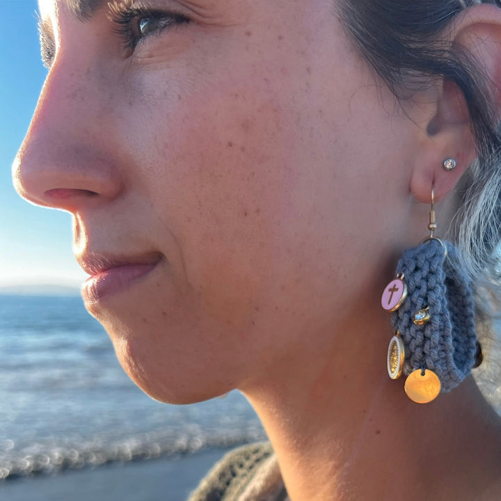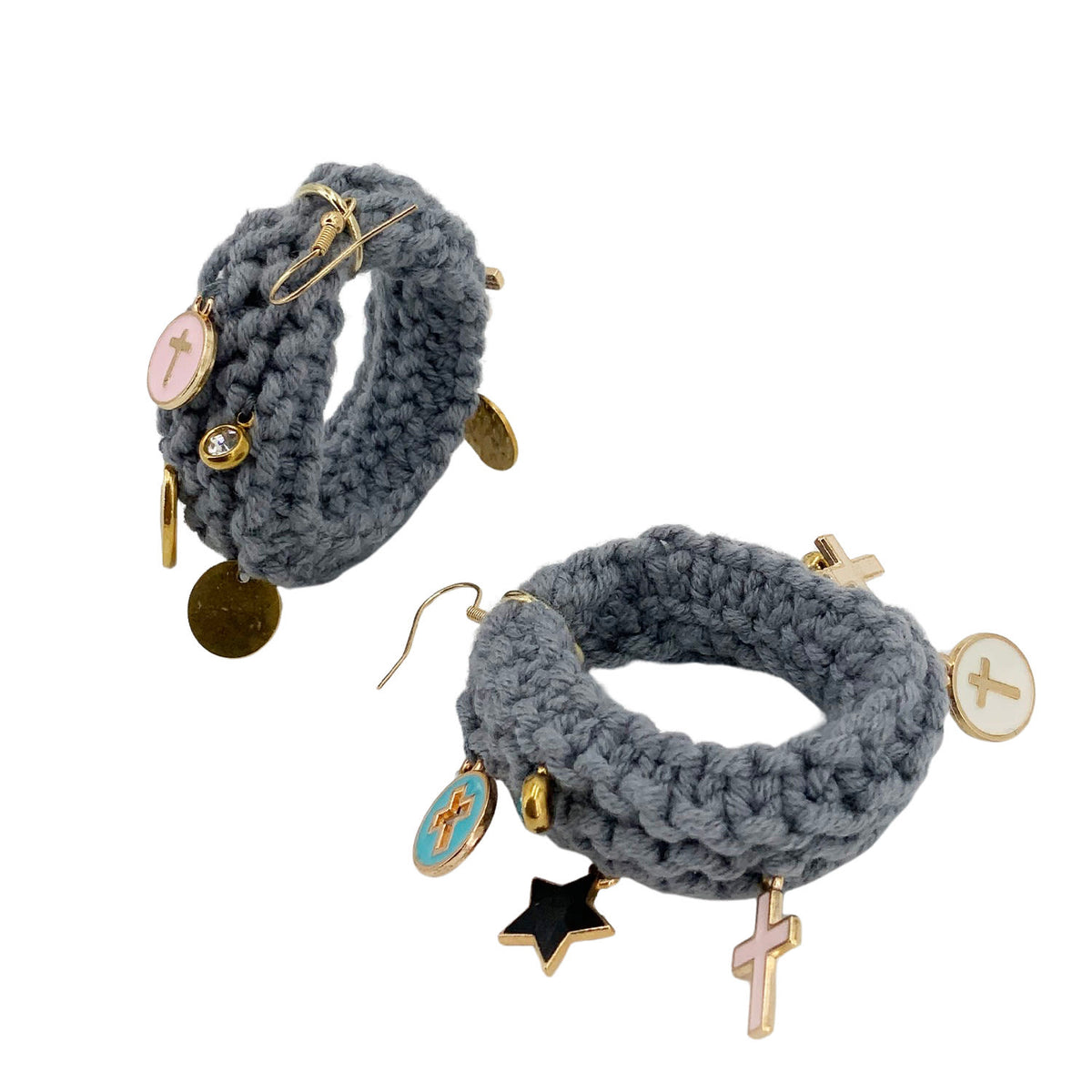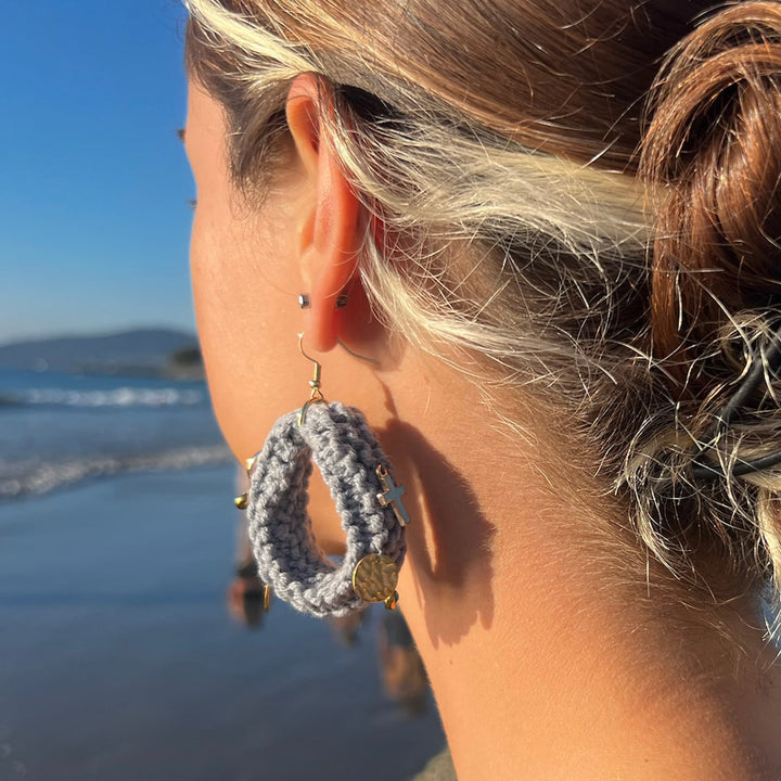 These Drop Earrings with Charms - Grey by Hilo De Mar are a celebration of meticulous craftsmanship and conscious living. Hand-knitted in Madrid, their lightweight and soft feel makes them ideal for everyday wear, while their unique design elevates them for special occasions. Each pair is a labor of love, blending traditional techniques with contemporary style. These earrings are more than just an accessory; they embody an ethical and sustainable approach to fashion, making them a personal statement of thoughtful beauty.