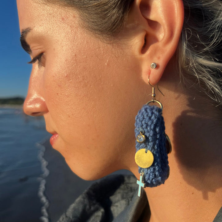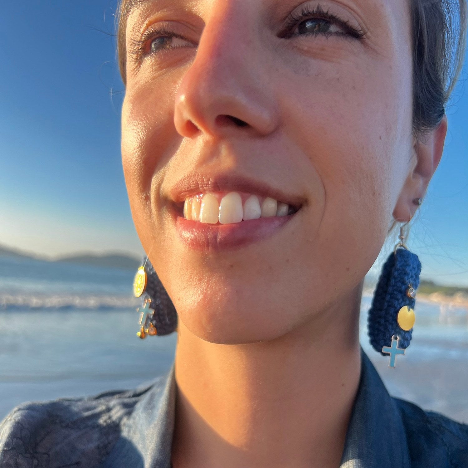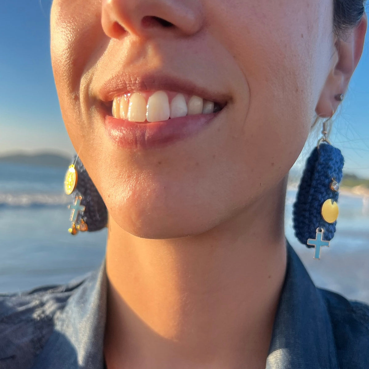 These Drop Earrings with Charms - Blue by Hilo De Mar are a celebration of meticulous craftsmanship and conscious living. Hand-knitted in Madrid, their lightweight and soft feel makes them ideal for everyday wear, while their unique design elevates them for special occasions. Each pair is a labor of love, blending traditional techniques with contemporary style. These earrings are more than just an accessory; they embody an ethical and sustainable approach to fashion, making them a personal statement of thoughtful beauty.