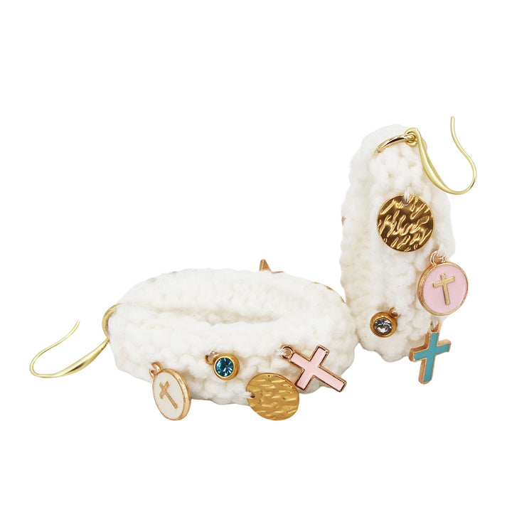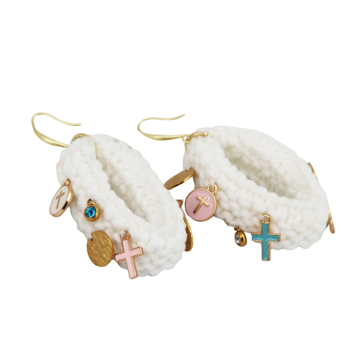 These Drop Earrings with Charms - White by Hilo De Mar are a celebration of meticulous craftsmanship and conscious living. Hand-knitted in Madrid, their lightweight and soft feel makes them ideal for everyday wear, while their unique design elevates them for special occasions. Each pair is a labor of love, blending traditional techniques with contemporary style. These earrings are more than just an accessory; they embody an ethical and sustainable approach to fashion, making them a personal statement of thoughtful beauty.