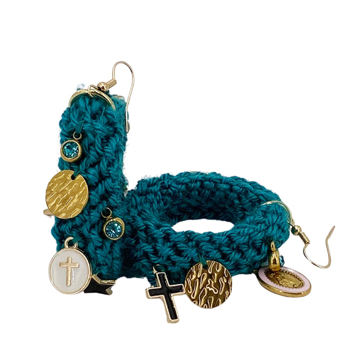 These Drop Earrings with Charms - Green by Hilo De Mar are a celebration of meticulous craftsmanship and conscious living. Hand-knitted in Madrid, their lightweight and soft feel makes them ideal for everyday wear, while their unique design elevates them for special occasions. Each pair is a labor of love, blending traditional techniques with contemporary style. These earrings are more than just an accessory; they embody an ethical and sustainable approach to fashion, making them a personal statement of thoughtful beauty.
