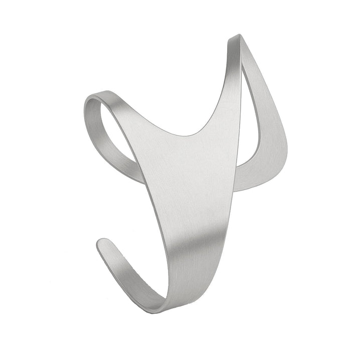 The Echo Bracelet by Hota Hota Jewellery is a wearable sculpture that elevates the everyday into the extraordinary. This cuff bracelet, worn on the left wrist, is crafted from stainless steel with a refined matte finish. Its chic and assertive design makes it a piece that "slips on like a secret."