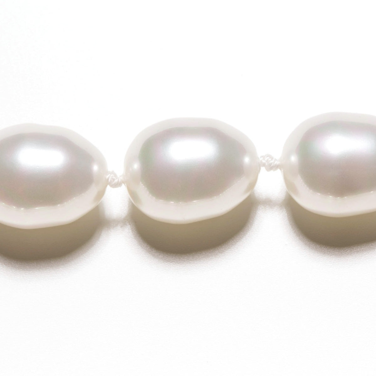 This necklace is 90 cm long and features 10-12 mm handmade seashell pearls and an elephant pendant. The details of the pendant and pearls are not specified beyond "handmade."