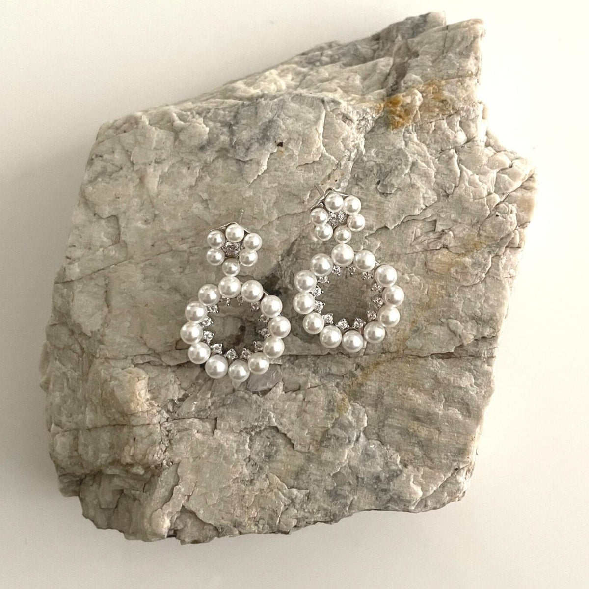 These Barbarella Earrings by House of Elliott are a detailed and stylish accessory for a festive look. The earrings feature high-quality 4mm seashell pearls and zirconia, creating a luxurious and sparkling aesthetic. Made of 925 sterling silver, they can be worn alone or paired with a pearl or silver chain necklace. They are a timeless piece that adds a touch of elegance and glamour to any outfit.