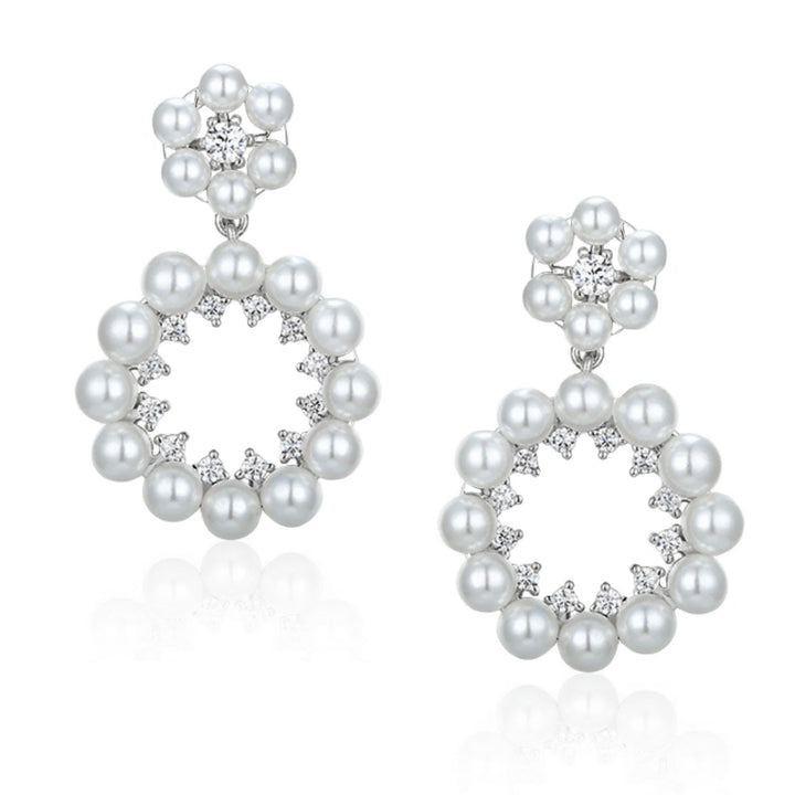 These dangle earrings are made from 925 sterling silver and feature 4mm seashell pearls and zirconia.