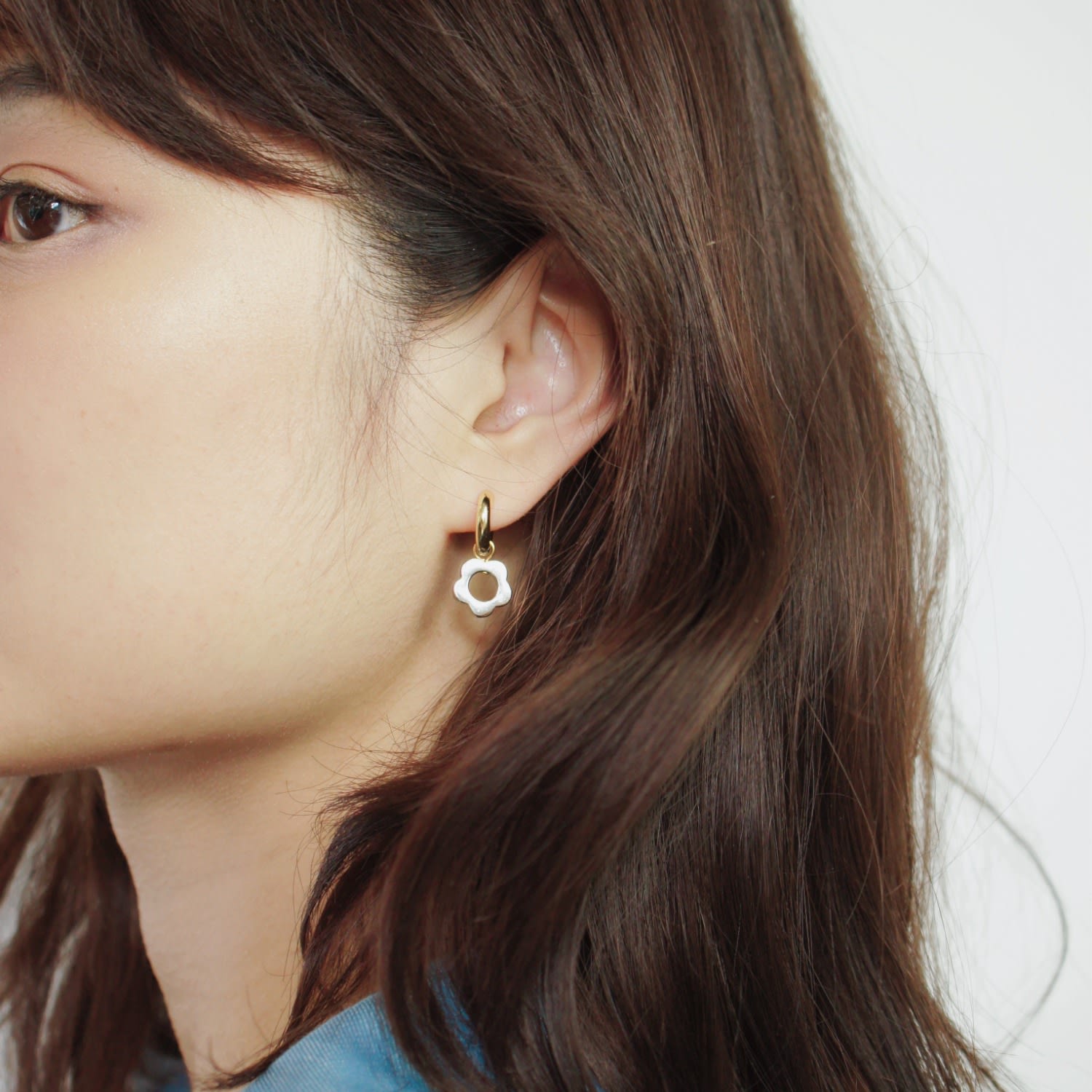 Flower Power Mismatched Huggie Hoop Earrings, Gold Vermeil/Sterling Silver