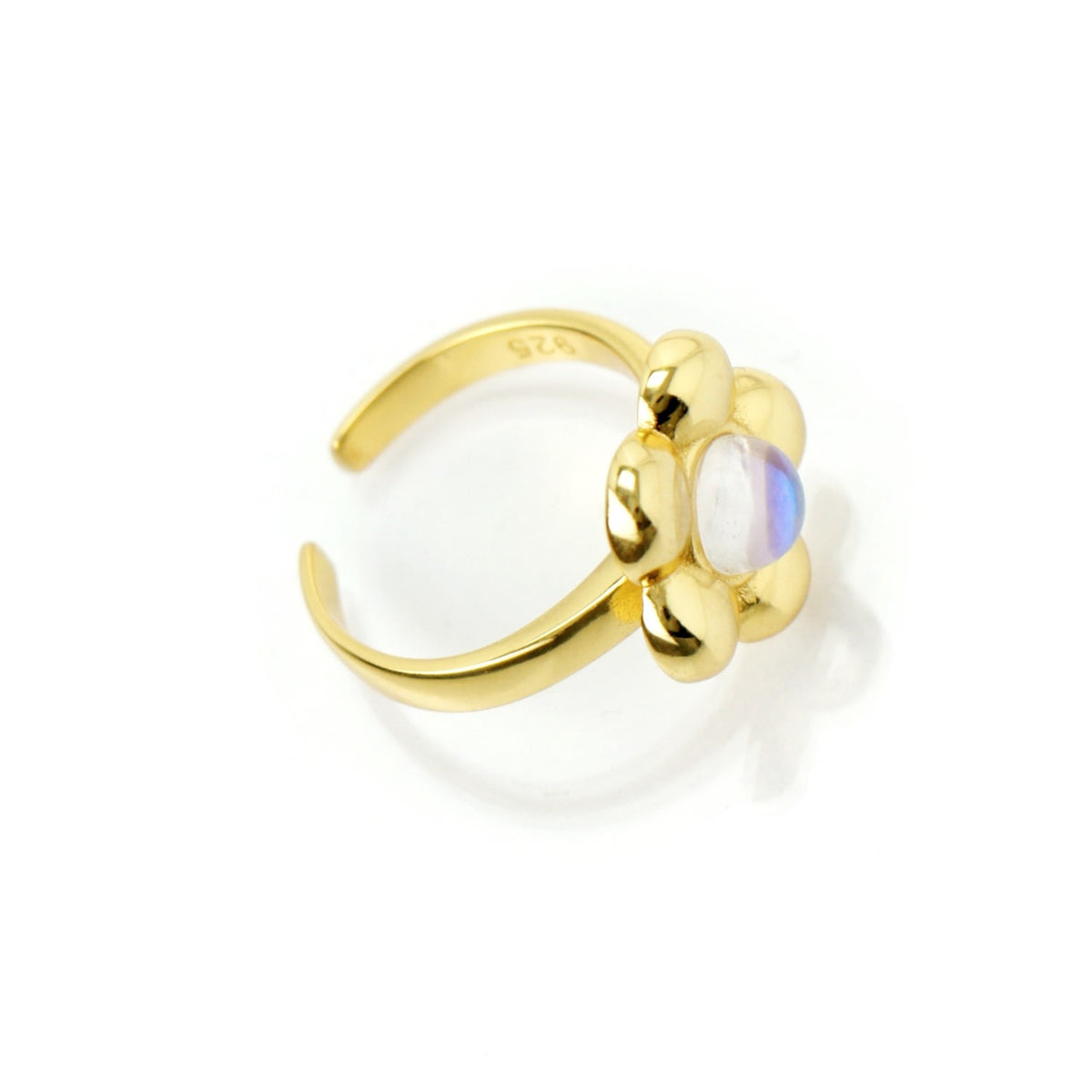 Flower Power Ring With Iridescent Crystal Center, Gold Vermeil