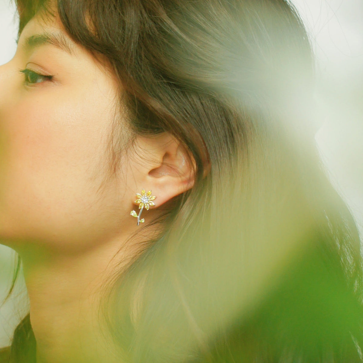 Garden Tales Crystal Daisy Sterling Silver Stud Earrings, Mellow Yellow