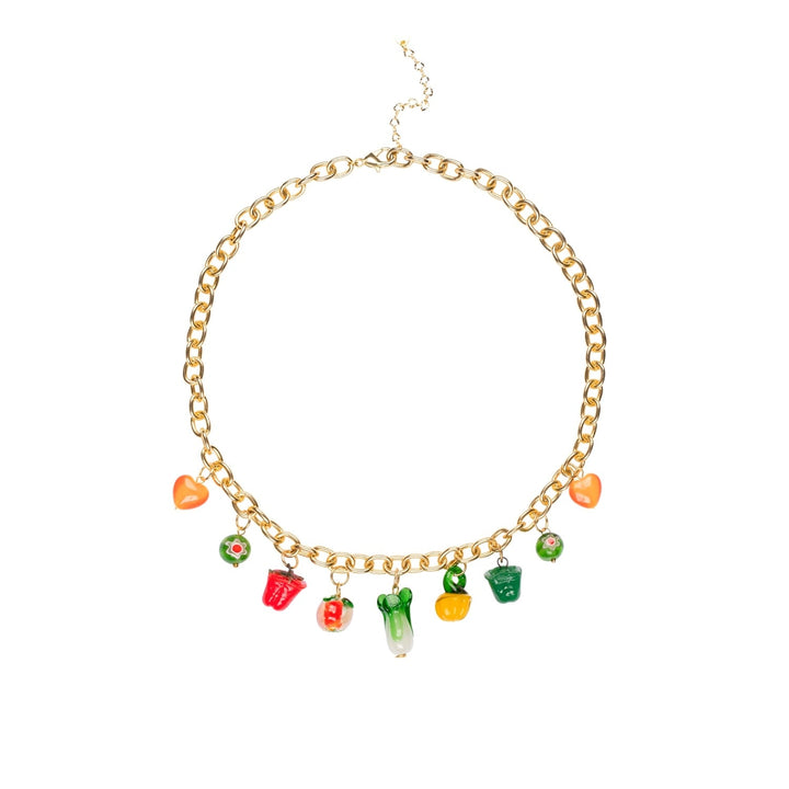 Garden Produce Glass Vegetable Charm Golden Chain Necklace