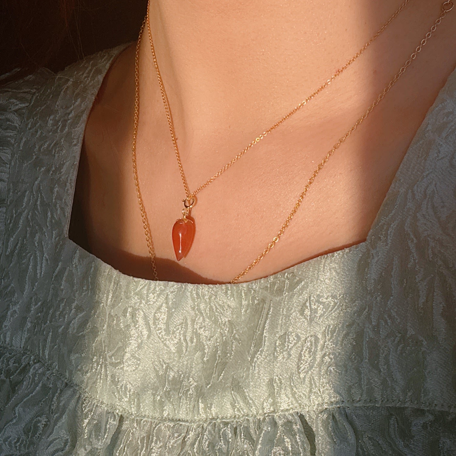 Organic Fruit Pendant 18K Gold Filled Necklace Agate Chilli
