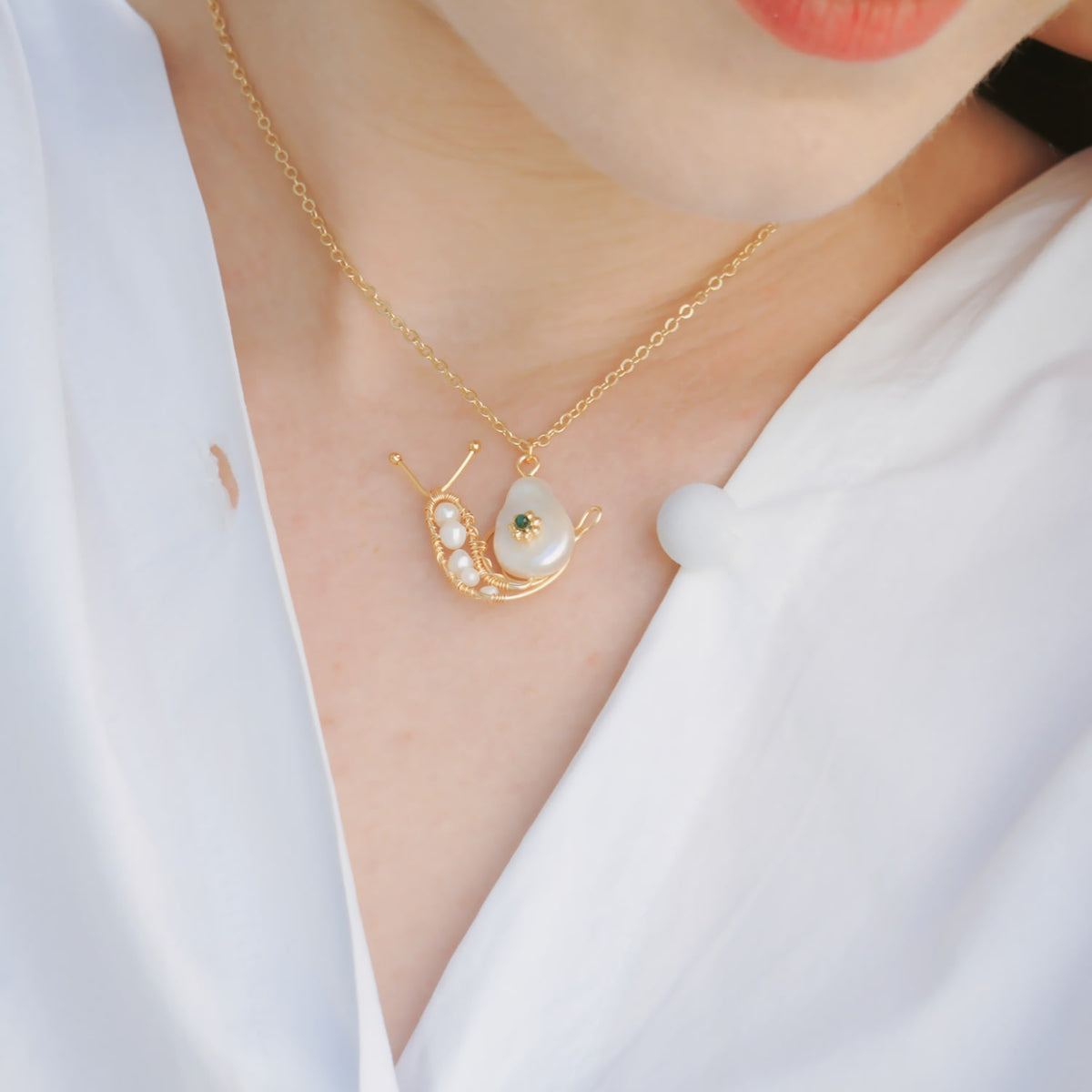 Snailed It Freshwater Pearl Snail Necklace 18K Gold-Filled Chain
