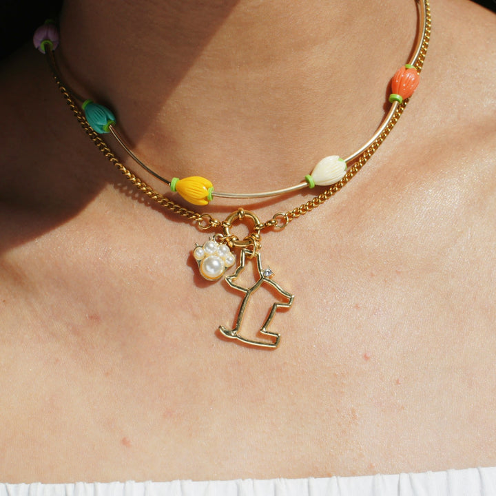 Pawsitive Charm Golden Chain Necklace With Pearl Paw And Golden Terrier Charms