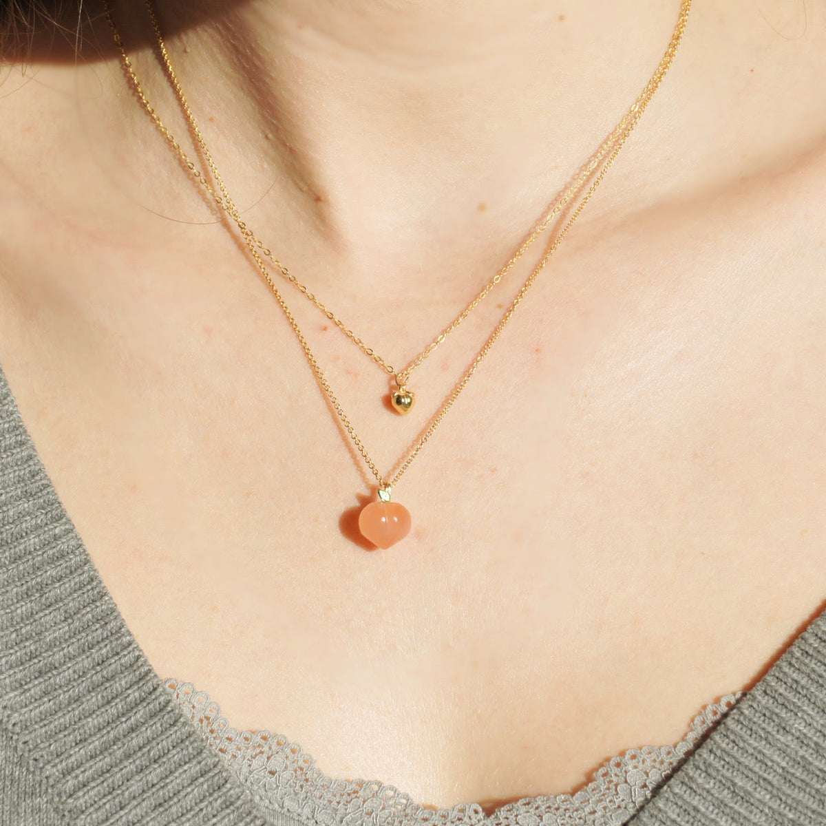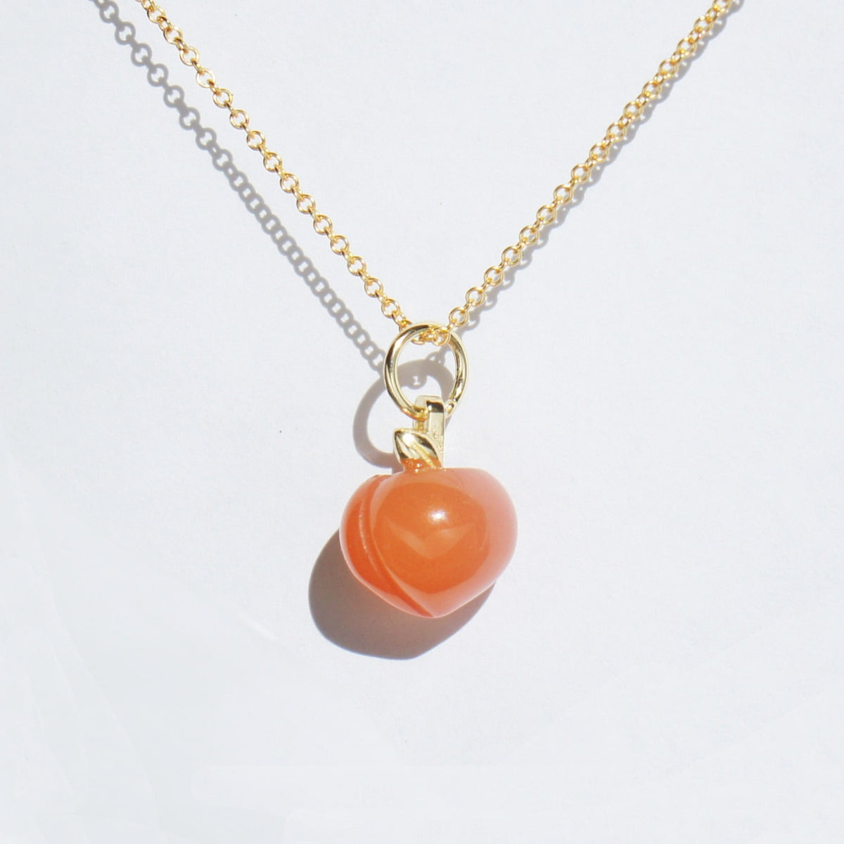 Organic Fruit Pendant 18K Gold Filled Necklace Agate Peach