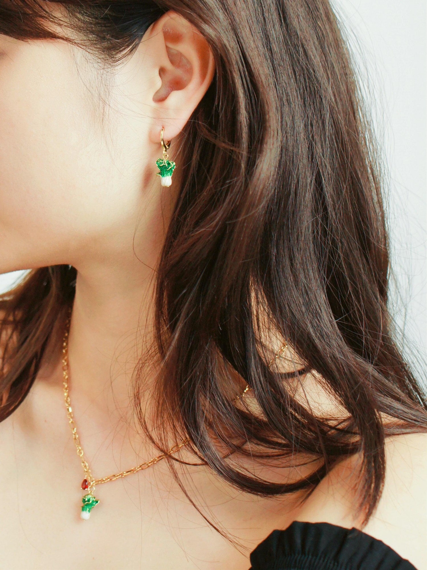 These huggie hoop earrings are crafted from metal with intricate enamel cabbage details.