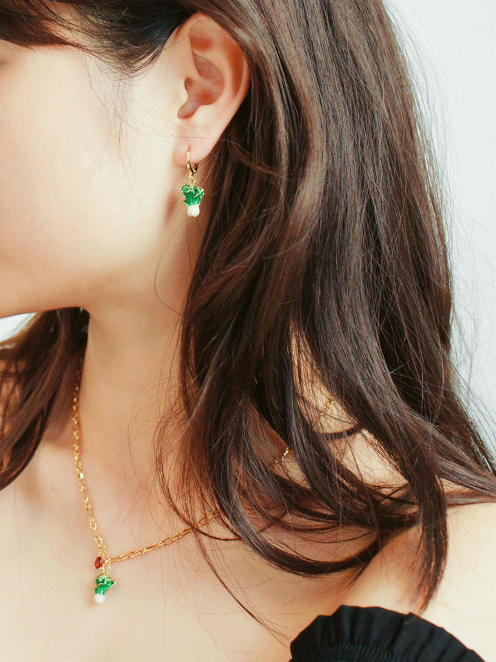 Garden Produce Enamel Cabbage Huggie Hoop Earrings