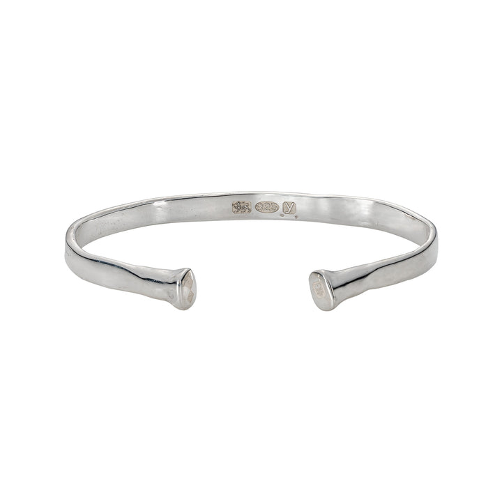 This limited-edition bangle is crafted from 20g recycled 925 silver. It is hallmarked by the London Assay Office.