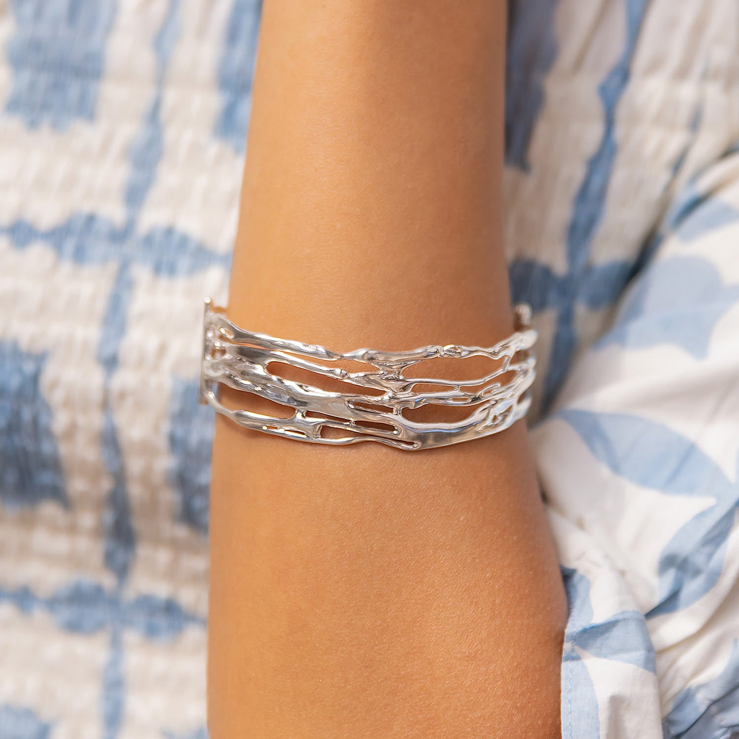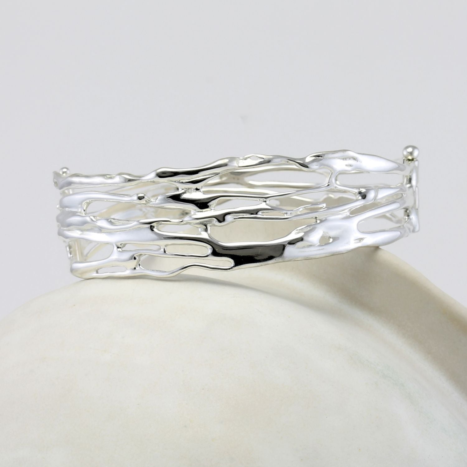 This bangle is handmade from sterling silver with an organic, flowing design.