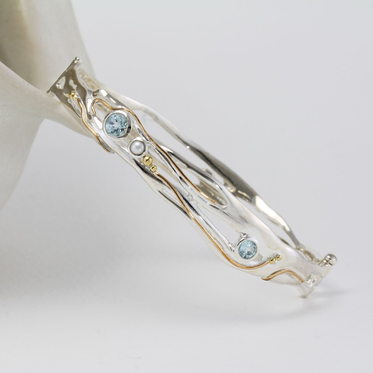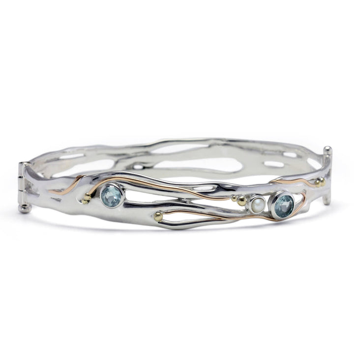 Organic Blue Topaz & Freshwater Pearl Hinged Bangle