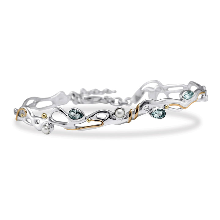 Handmade Riviera Blue Topaz & Pearl Hinged Bracelet