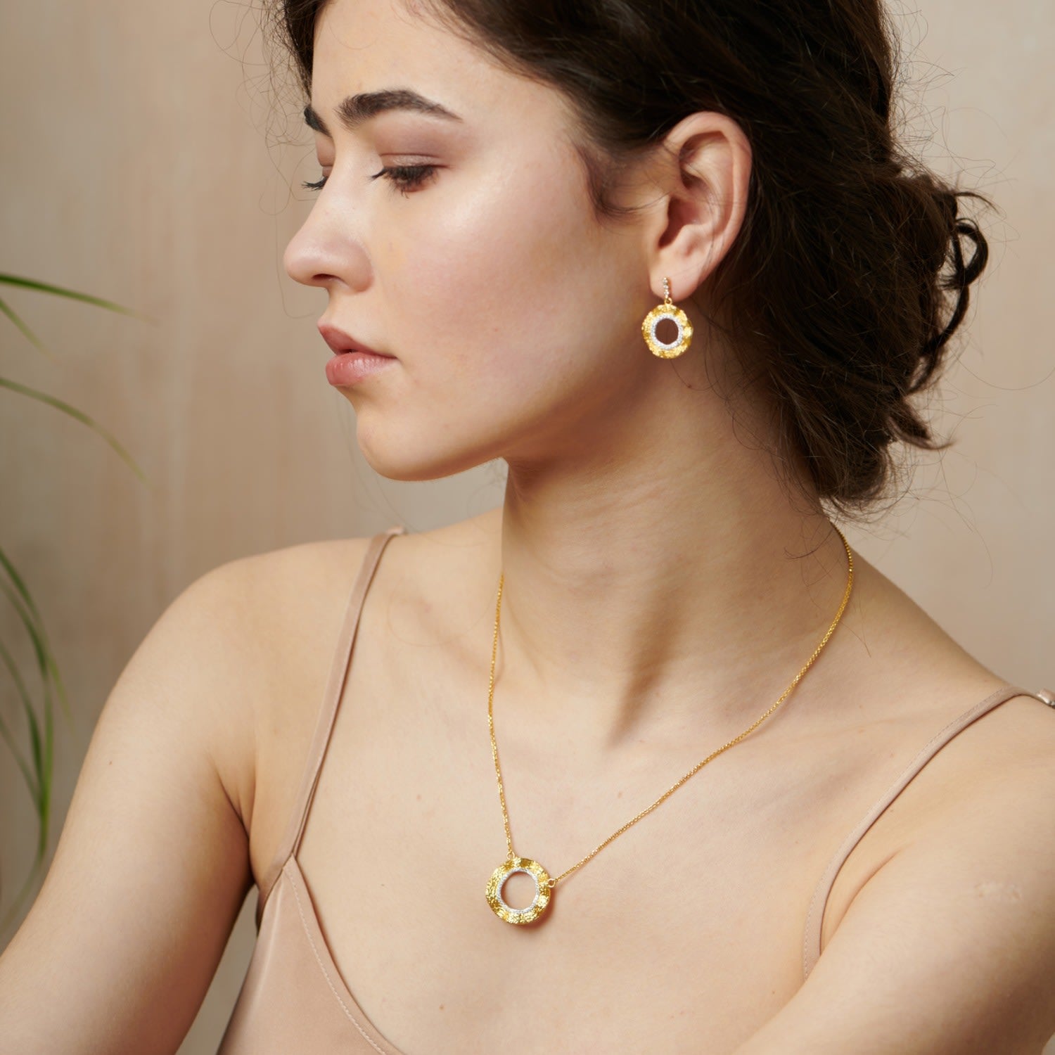 Shen Gold Vermeil Mixed Tone Circle Textured Earrings