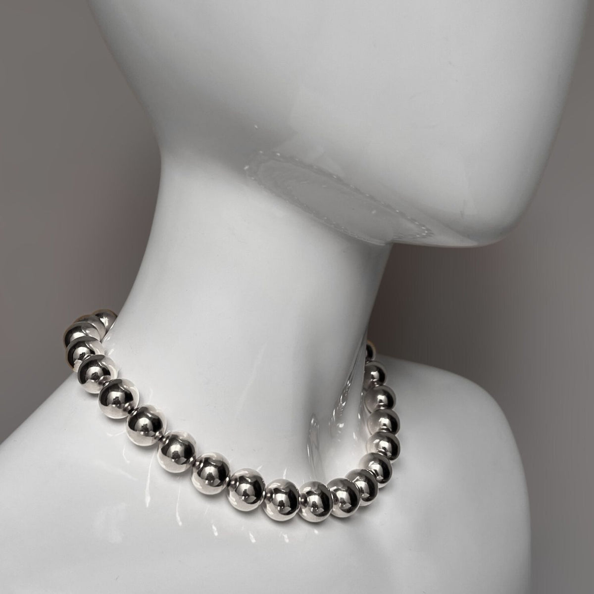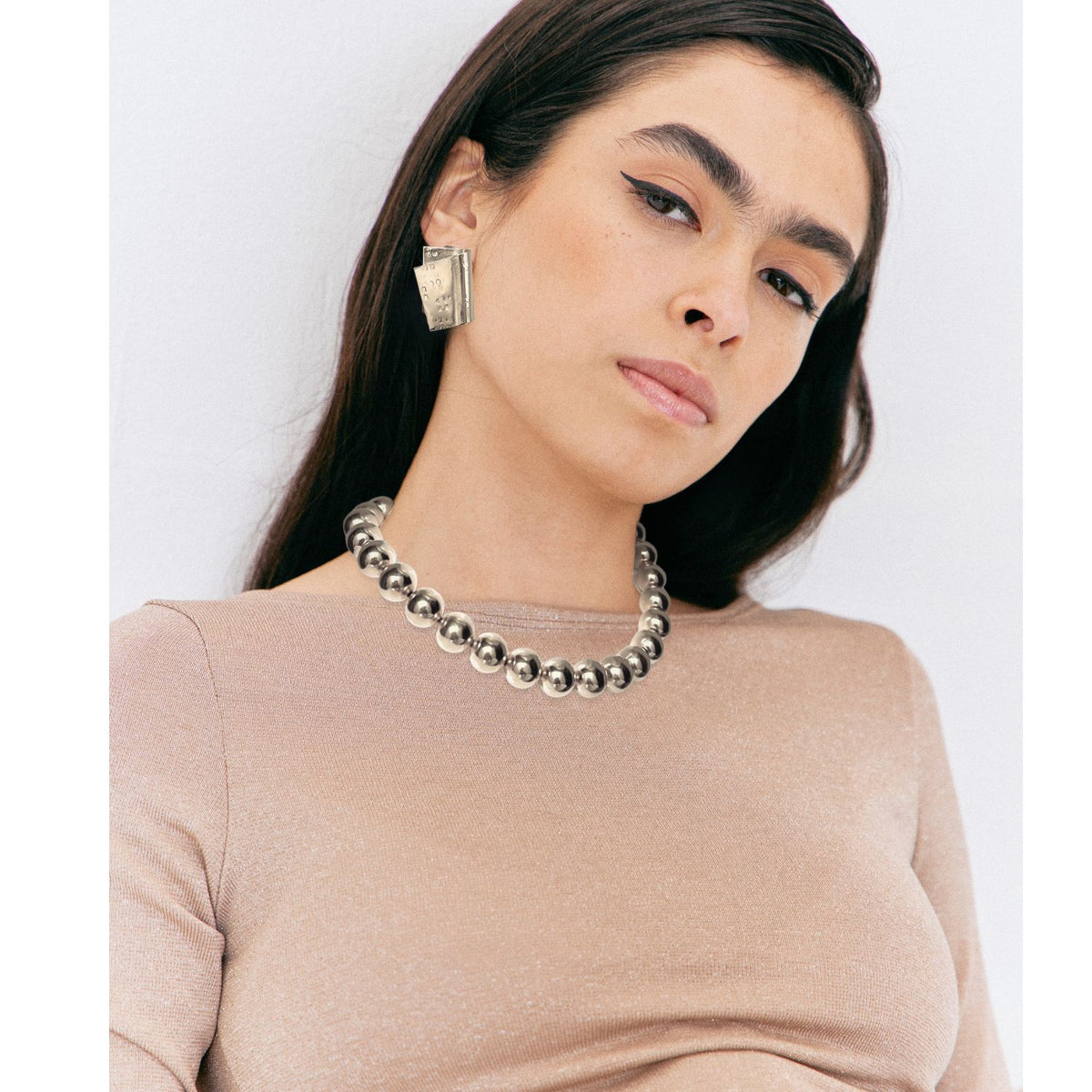 This Silver Lucille Ball Necklace by Jaredjamin is a timeless classic that adds a touch of sophisticated elegance to any look. The hollow brass beads give the necklace a lightweight and comfortable feel, while the silver plating provides a bright, luxurious shine. This necklace is a versatile staple that can be worn for years to come.