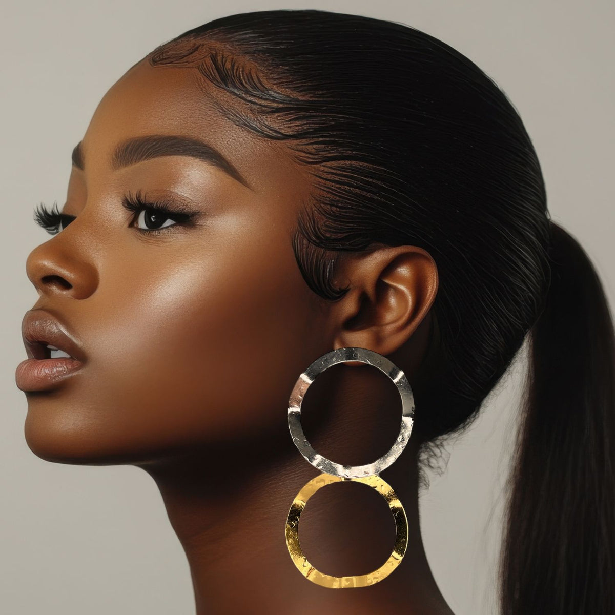 These Duet Drop Post Earrings by Jaredjamin are a conversation-starter. The double-circle design is textured and manipulated to favor the warm and cool tones of each hue, adding a unique and artistic flair. These earrings are perfect for a bold, tarnish-free look that will last for years.