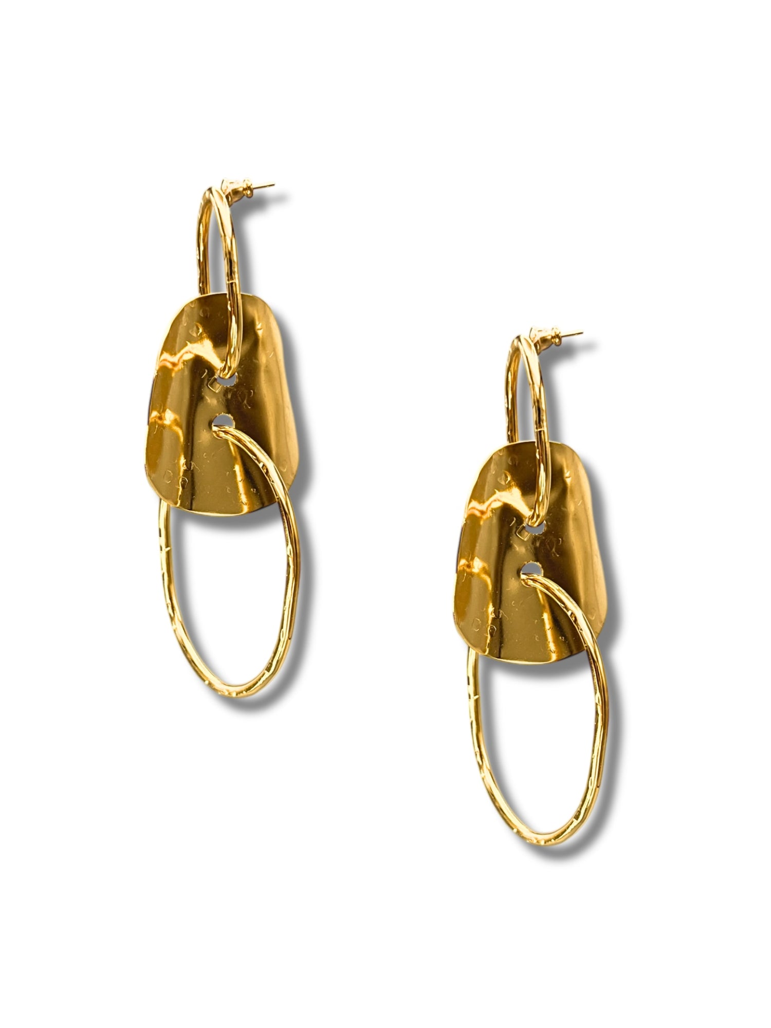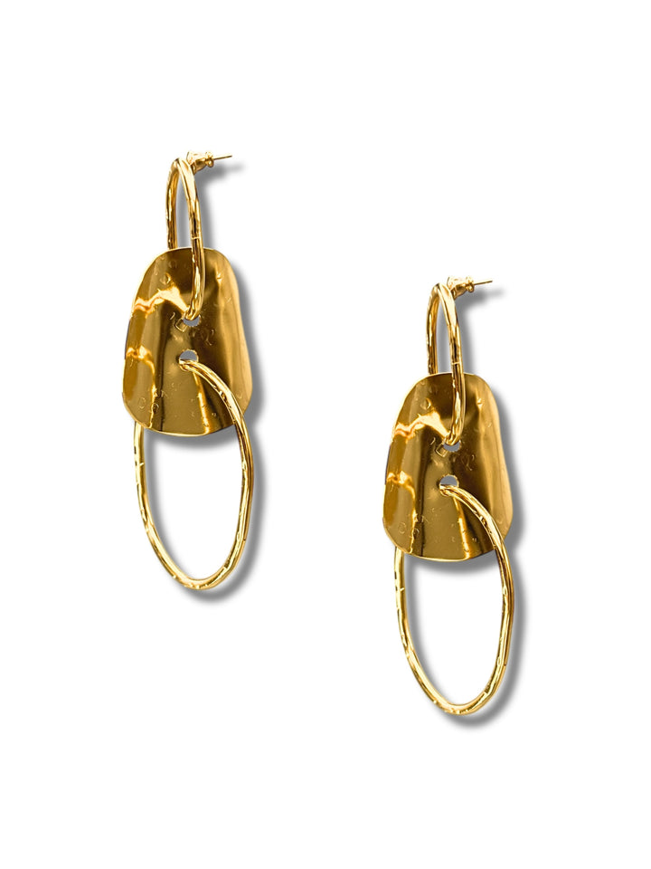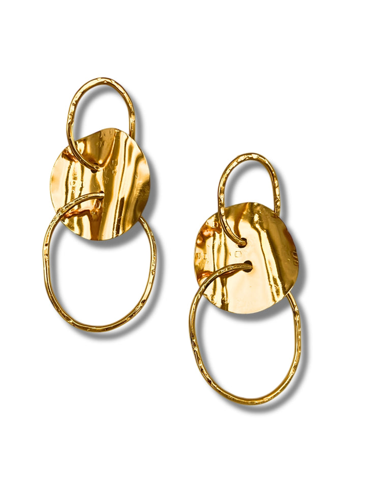 These post earrings are made from hammered metal and are gold in color.