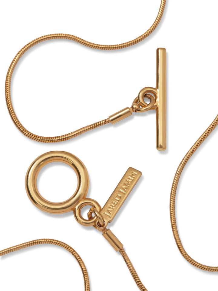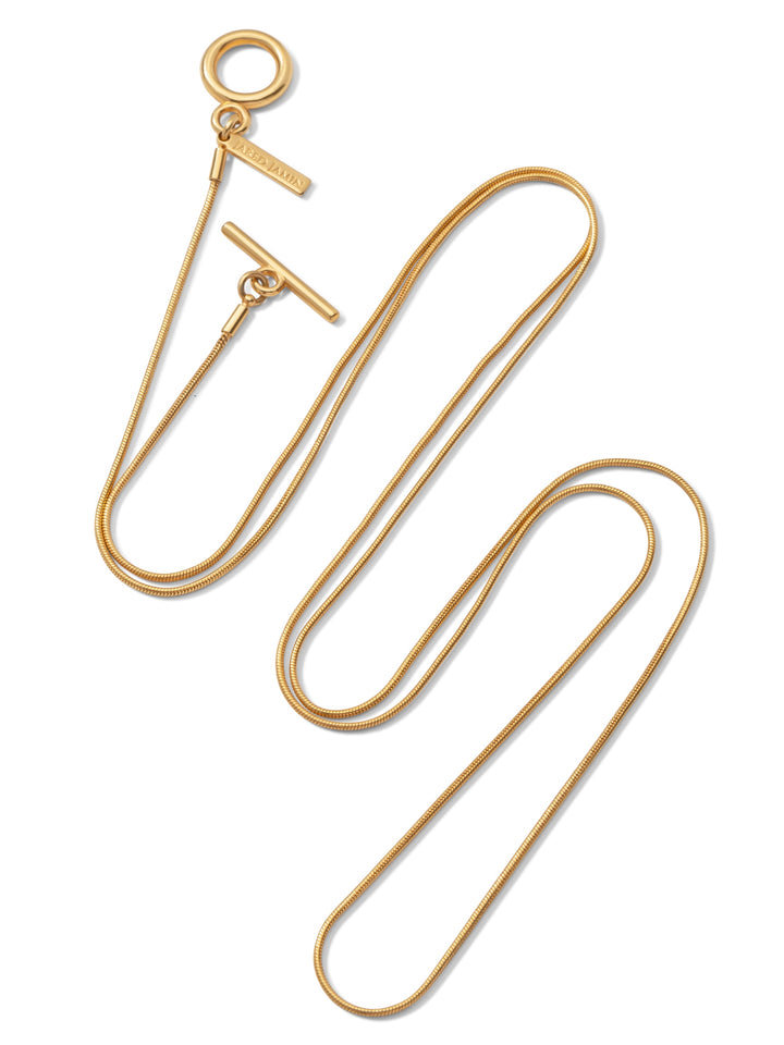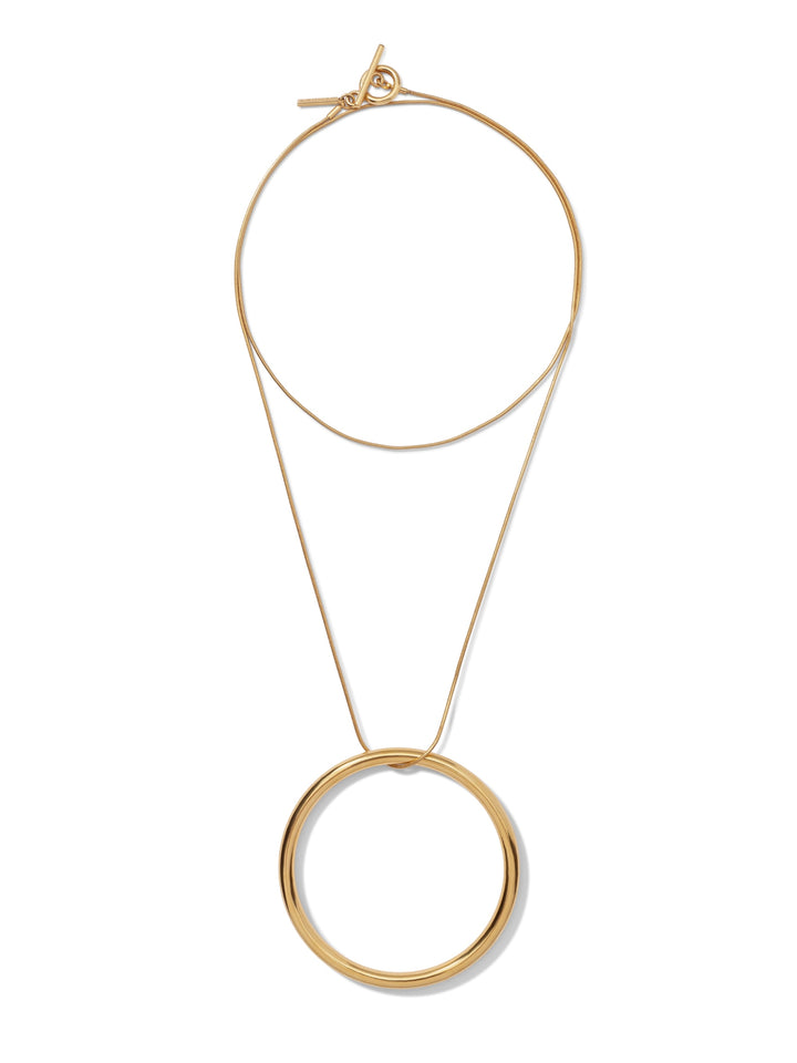This necklace features a 18-karat gold-tone snake link chain paired with a smooth circular brass pendant in 18-karat gold-tone. The pendant can be removed and worn as a bangle.
