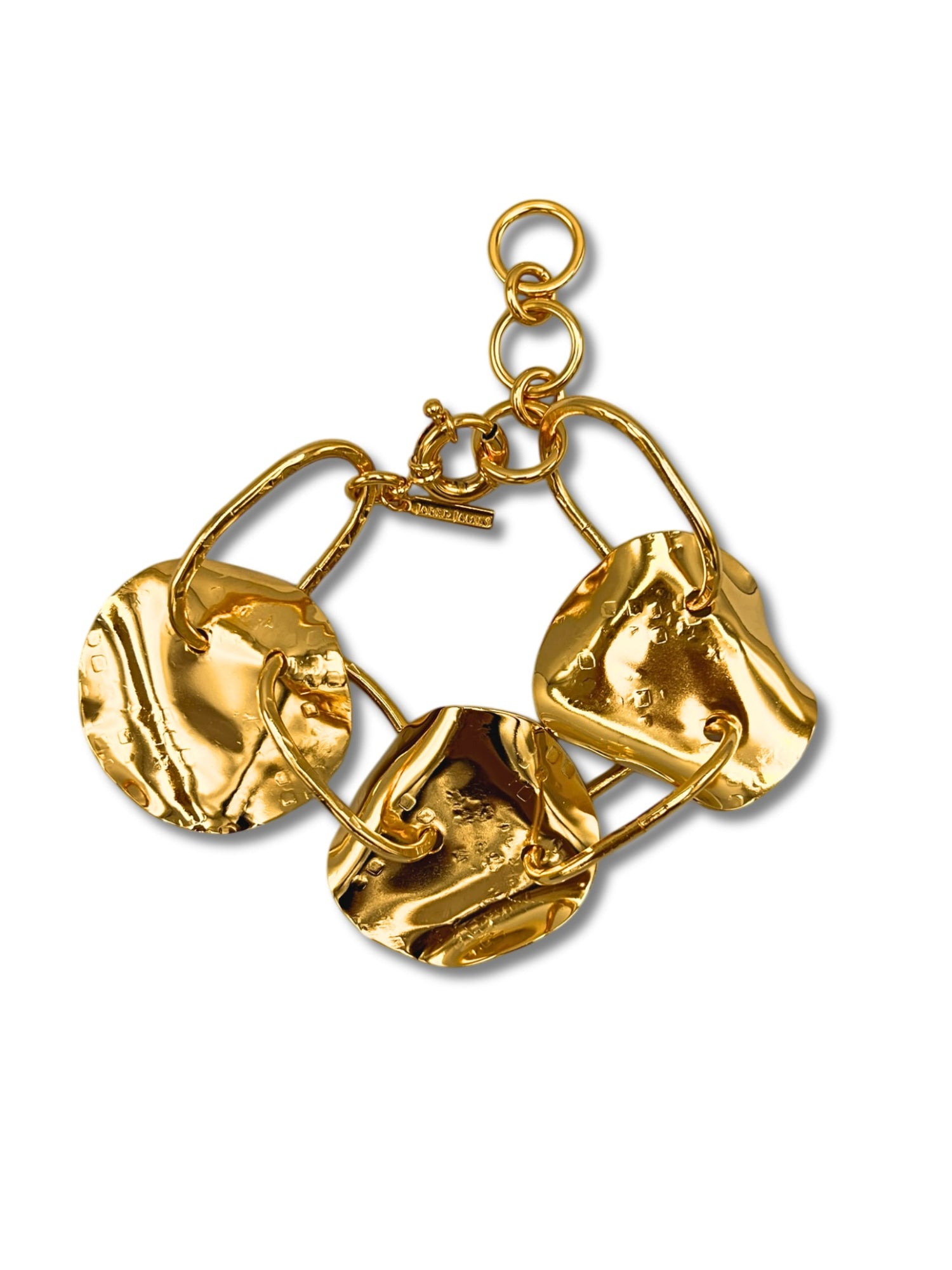 This Gold Viviane Link Bracelet by Jaredjamin embodies fearless luxury with its edgy hoops and striking closures. The handcrafted, hammered texture adds a touch of refined artistry, making this a bold statement piece for the woman who is a modern warrior. This bracelet is a symbol of strength and daring style, designed to be worn by the confident individual.