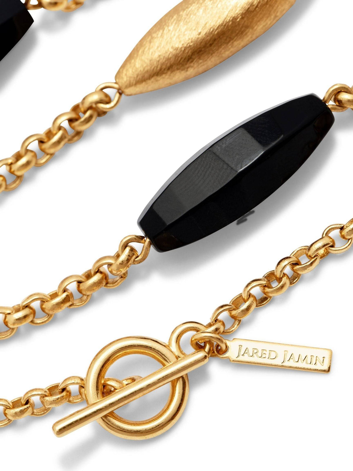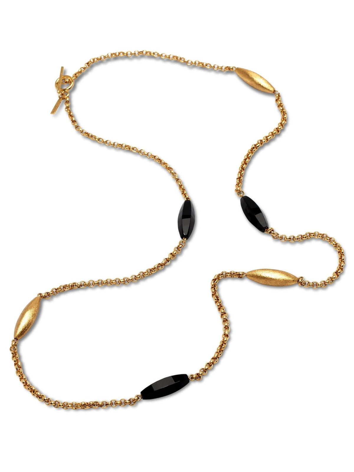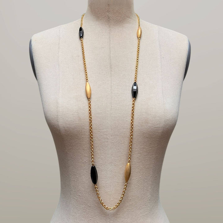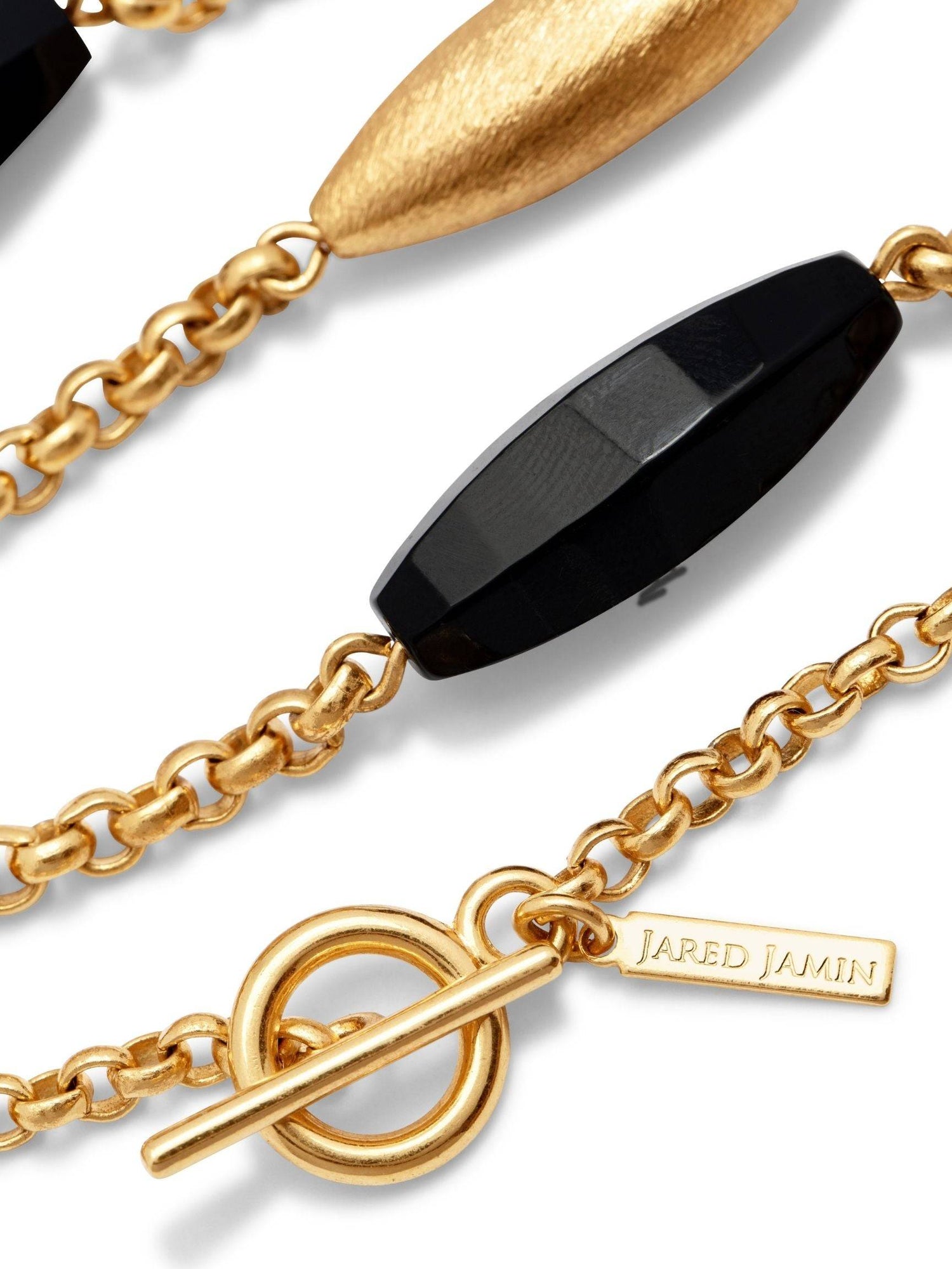 The Zeppelin Luna Onyx Chain Necklace by Jaredjamin is an artisanal and timeless piece. This handcrafted necklace features textured Copper Beads with an 18k Gold tone finish that resemble 1930s travel vessels. The length is 40", and the attention to detail makes every day feel like a special occasion.
