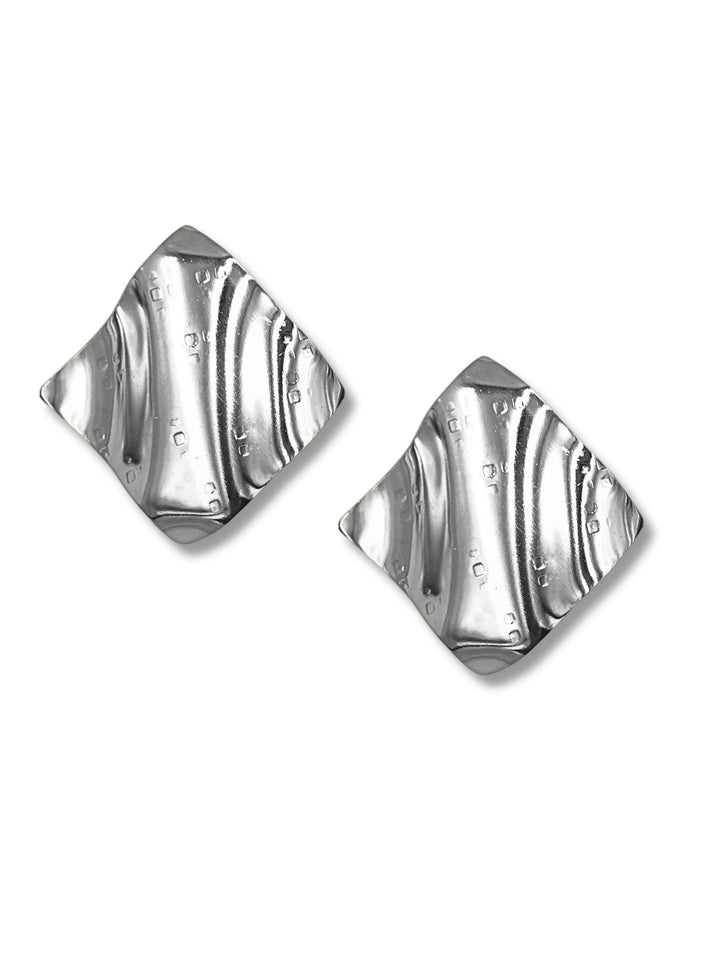 These clip-on earrings are silver-plated and are 2.5 inches in length. They feature a wave texture.