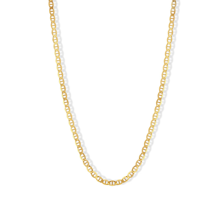 This Diamond-Cut Mariner Necklace by Jewelbird is a classic and versatile staple for any luxury collection. Its 14-karat solid yellow gold mariner links are meticulously diamond-cut, catching the light with a brilliant sparkle that elevates the traditional design. The substantial yet elegant links give the necklace a timeless appeal, making it perfect for everyday wear or for adding a touch of sophisticated glamour to a layered look. It comes complete with a secure lobster clasp.