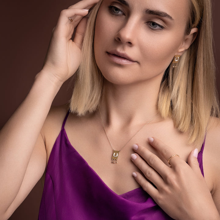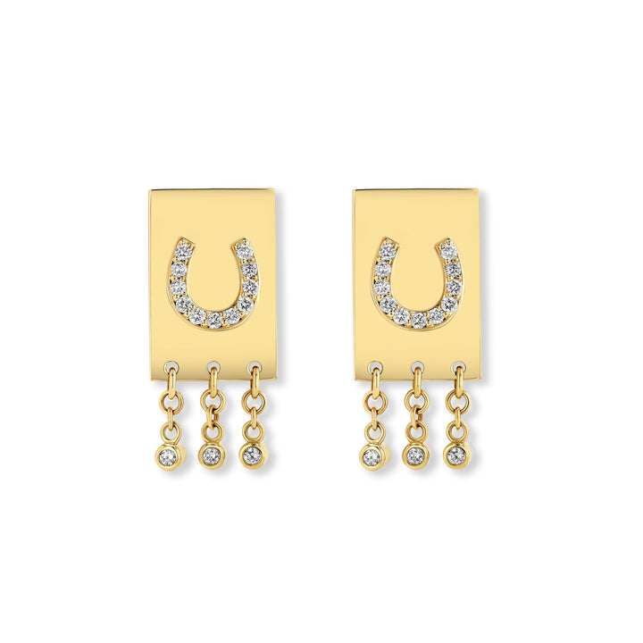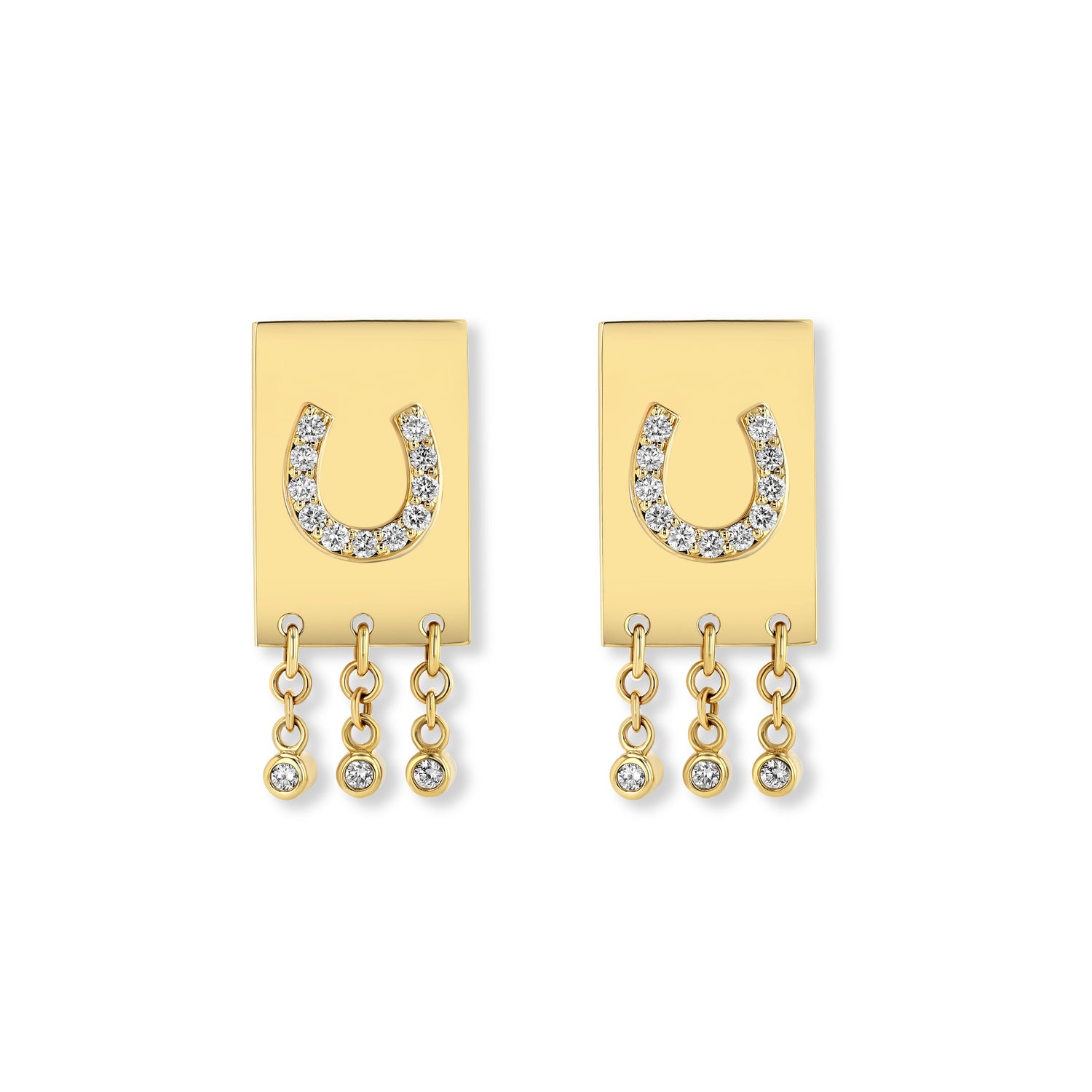 These Diamond Horseshoe Earrings by Jewelbird are a beautiful blend of luck and luxury. Featuring a delicate horseshoe design, a symbol of good fortune, these earrings are adorned with sparkling diamond pave and dangles. The 14k yellow gold setting enhances their warm glow, creating a timeless and elegant piece that's perfect for everyday wear or as a thoughtful gift with a deeper meaning.