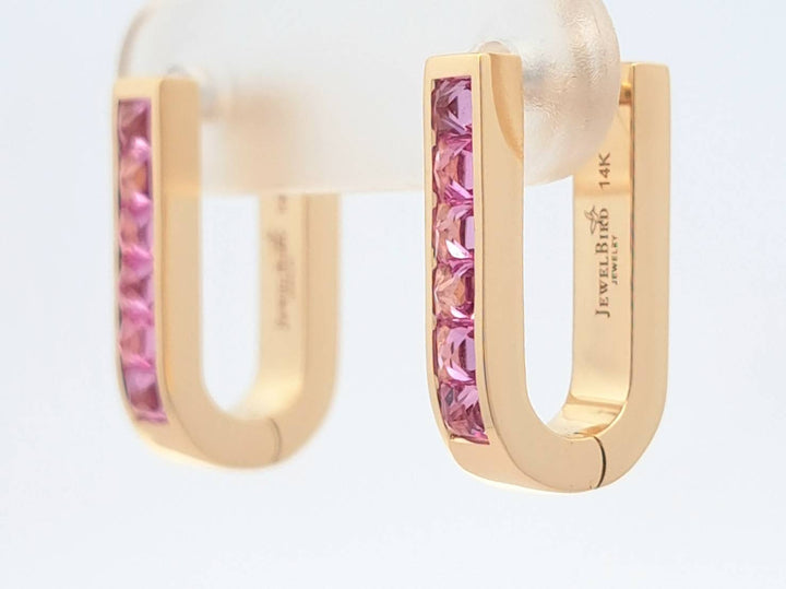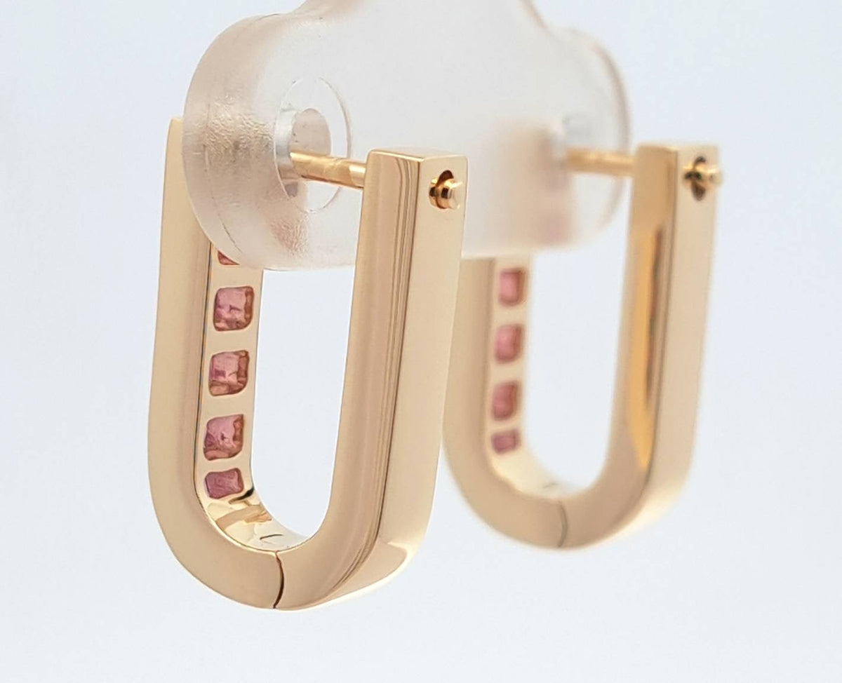 Pink Sapphire U-Shaped Earrings
