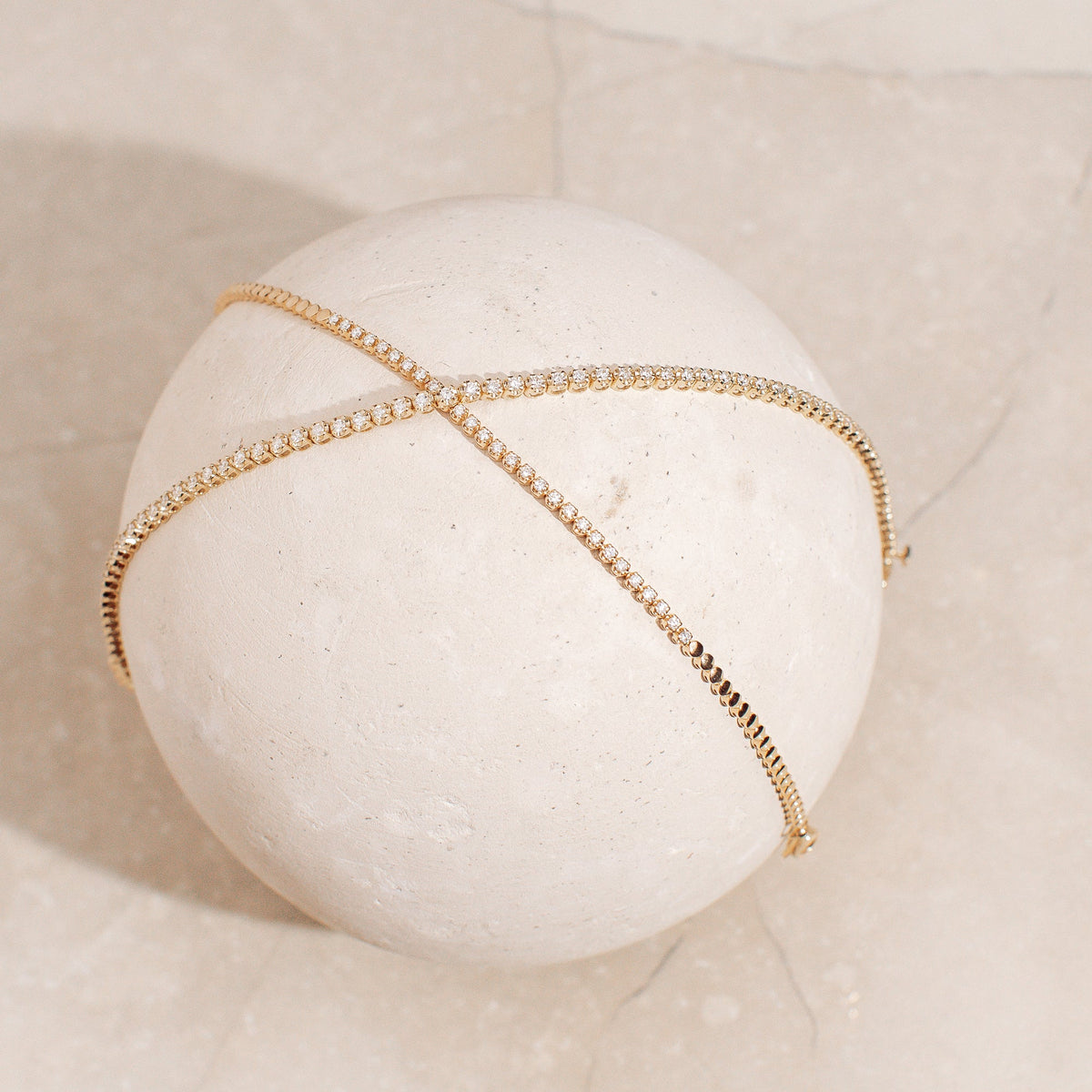 The Diamond Tennis Bracelet by Jewelbird is a classic and elegant piece. This 14k solid yellow gold bracelet features a total of 1.08 ctw diamonds, making it a luxurious statement. It looks great on its own for both day and night wear and can also be stacked with other bracelets. This timeless piece is a must-have for any jewelry collection.