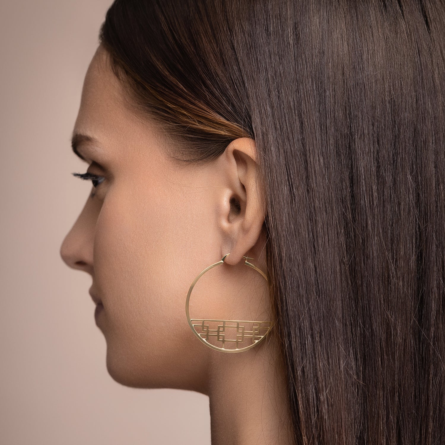 These Fretwork Hoop Earrings by Jewelbird are a bold yet elegant statement. Featured in British Vogue, their fretwork cutout design is based on an ancient Chinese architectural element, giving them a rich cultural history. Crafted from solid 14k gold, these hoops are a timeless piece that adds a touch of sophisticated flair to any outfit. They are a true modern classic.