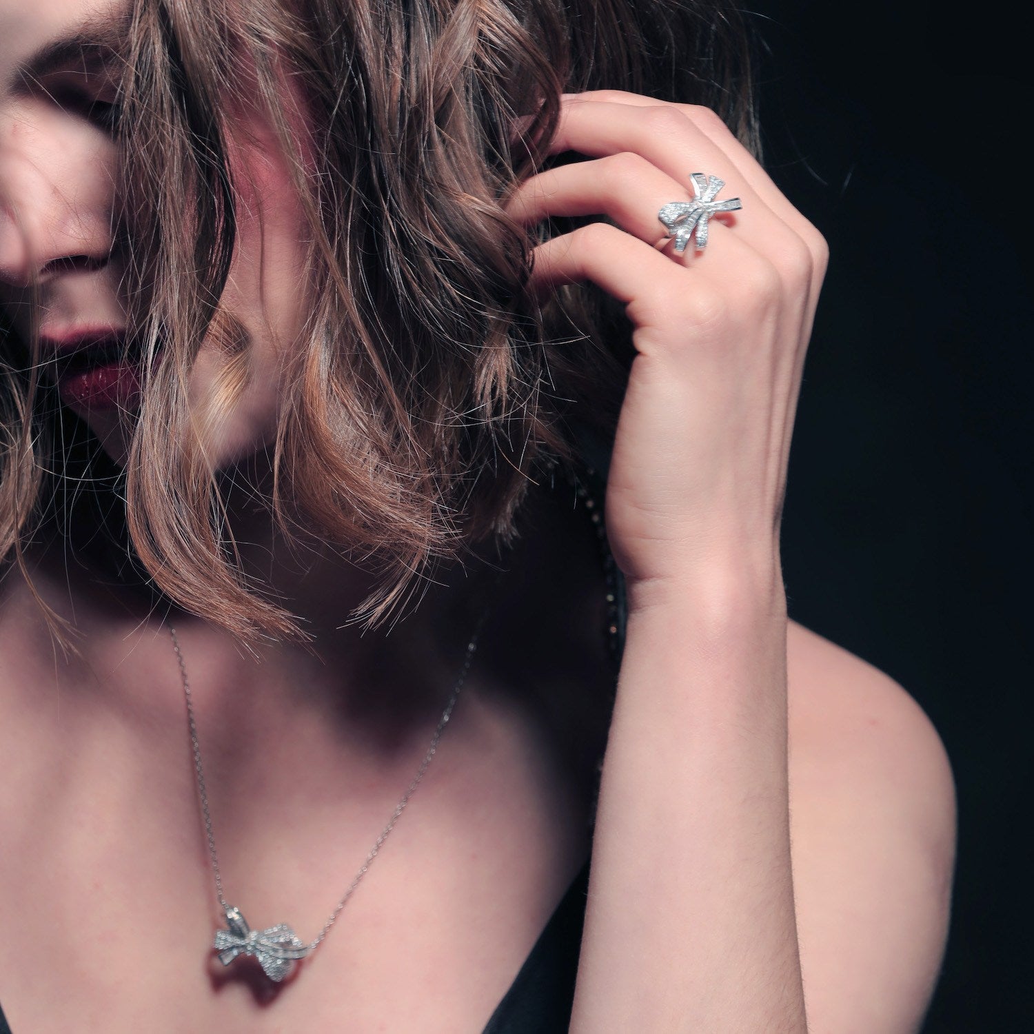 This White Gold Brilliant Diamond Bow Earring by Jiaying Wang Wjy Studio London is the ideal gift for those in love. The delicate bow and brilliant cubic zirconia stones create a charming and elegant look, embodying the essence of romance and affection. These earrings are perfect for adding a touch of sophisticated love to your style.