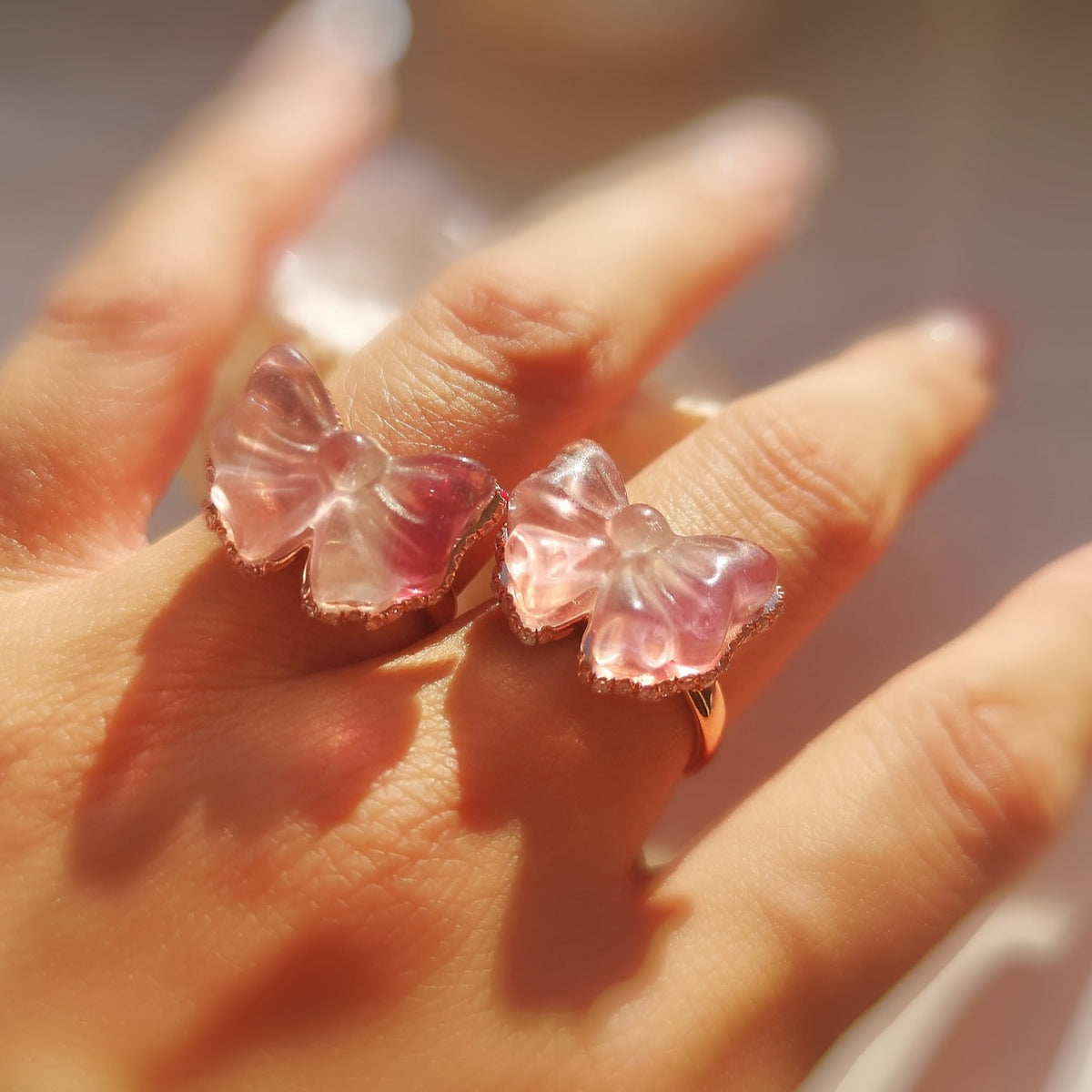 This Bow Tie Handmade Engraved Fluorite Ring by Jiaying Wang Wjy Studio London is a unique and symbolic piece. The ring features a mini-engraving of a bow tie on a natural fluorite stone, which is a traditional art and jewelry skill. The animal engraving represents luck, happiness, and wealth, making this a perfect and meaningful gift.