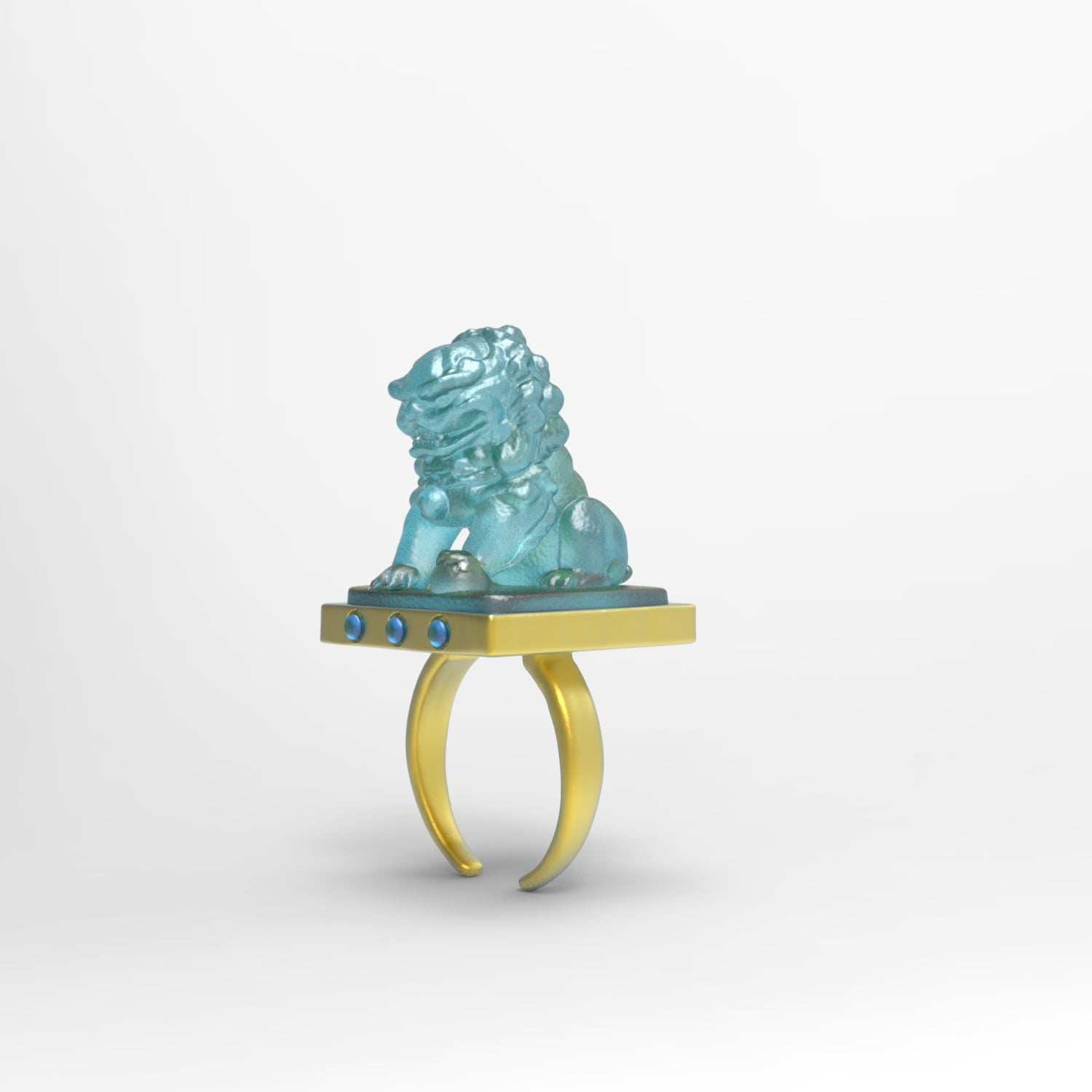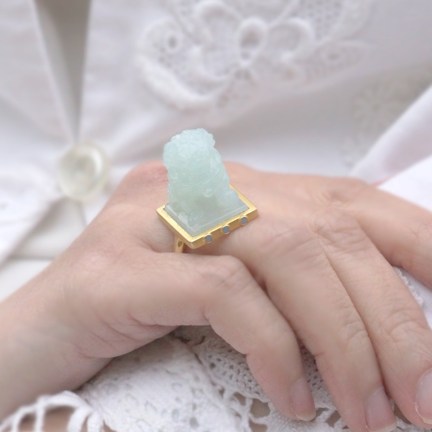 Jade Handmade Engraved Lion Gold Ring