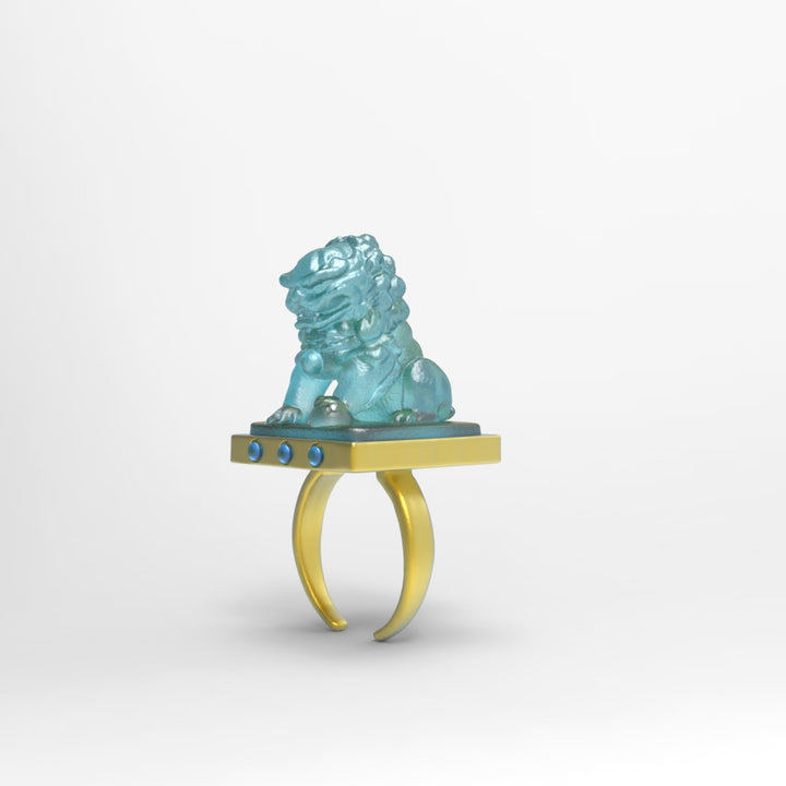 This Jade Handmade Engraved Lion Gold Ring by Jiaying Wang Wjy Studio London is a beautiful and meaningful piece. The ring features a meticulously carved jade lion, a symbol of good fortune, protection, and prosperity. This piece is a blend of traditional Chinese culture and modern jewelry design, symbolizing strength and protection. It is a unique and artistic statement piece that carries a deep cultural sentiment.