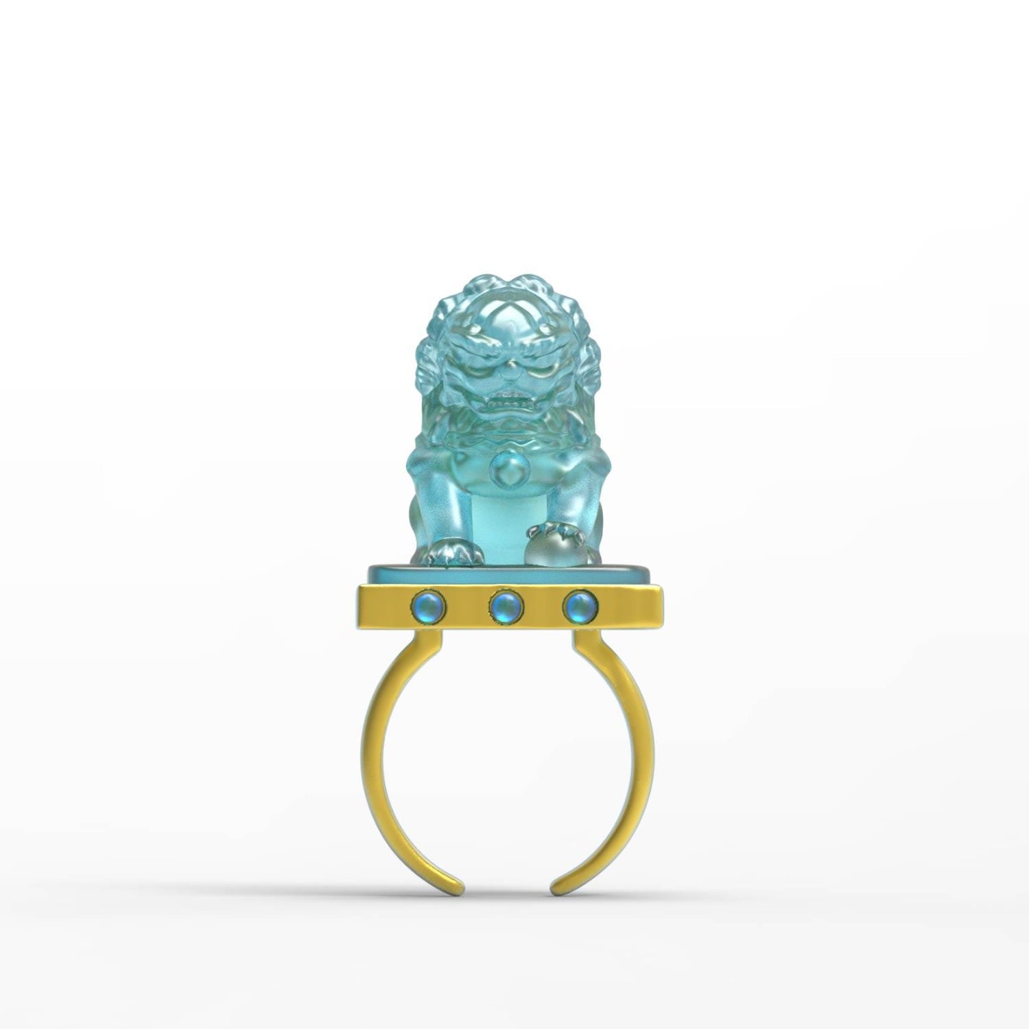 This ring is crafted with an unspecified metal and features a jade lion. The lion is meticulously carved using micro-engraving techniques. All gemstones are natural.