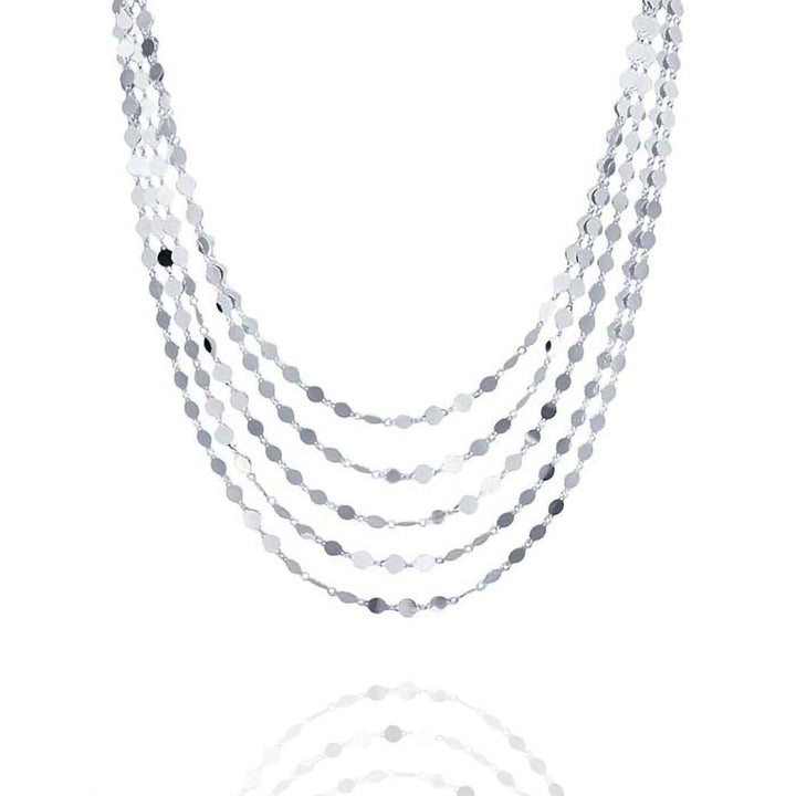 This layered necklace is made from sterling silver and features five strands of flat round links.