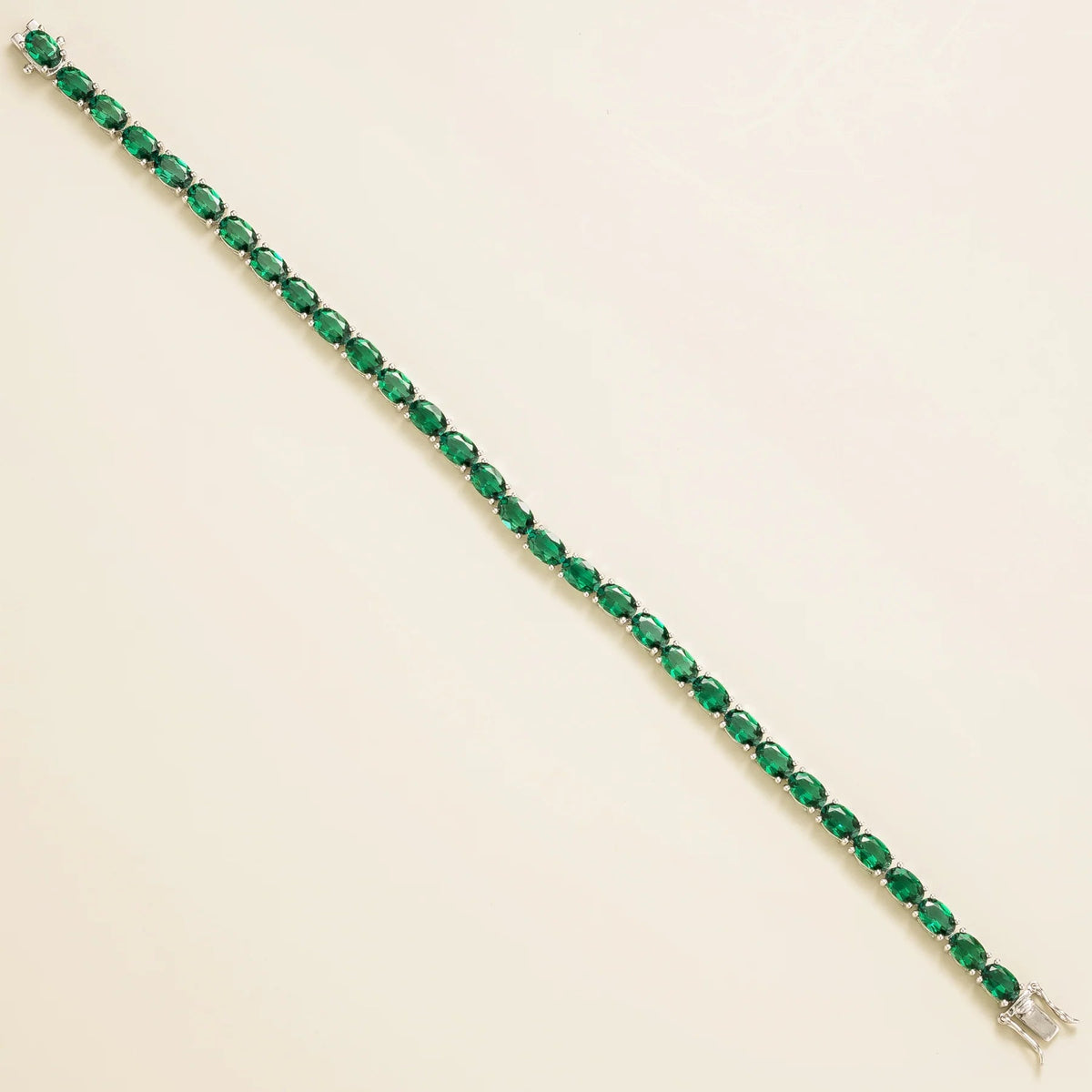 This Salto White Gold Tennis Bracelet Set With Emerald by Juvetti is a testament to timeless elegance and luxury. The bracelet is set with oval-cut emerald gemstones, providing a vibrant and sophisticated contrast to the white gold. This piece is designed to preserve its original brilliance, making it a precious addition to any jewelry collection.