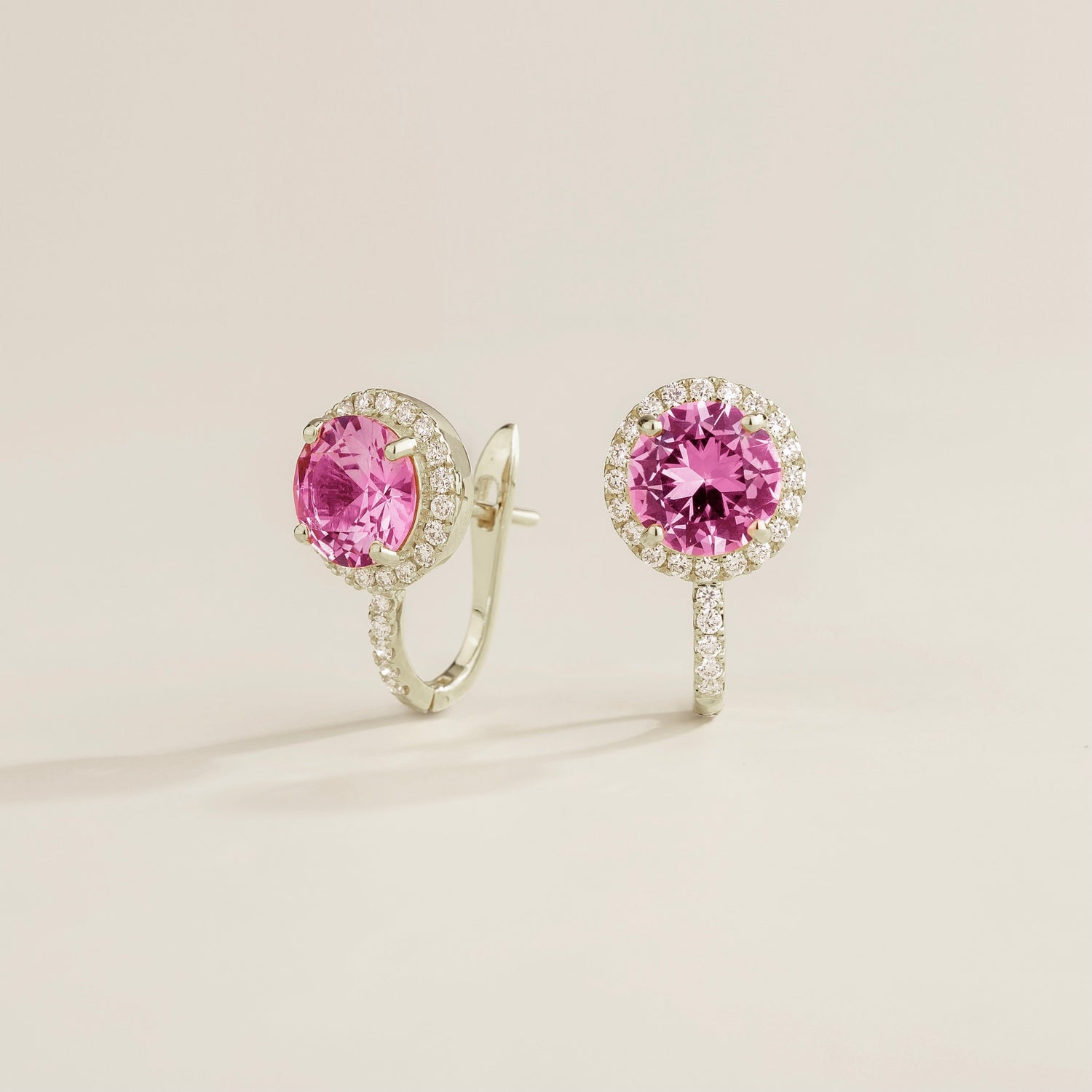Djerv White Gold Earrings In Pink Sapphire & Diamond