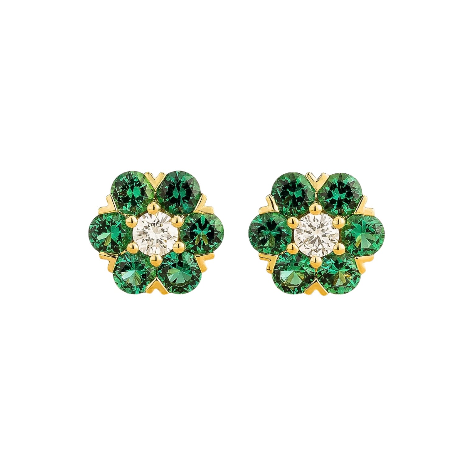 These Cinq Gold Earrings by Juvetti are a luxurious and elegant pair of fine earrings. They feature a beautiful combination of diamonds and emeralds, with the vibrant green of the emeralds creating a stunning contrast with the brilliant sparkle of the diamonds. The earrings are made from 18K gold vermeil, adding a touch of classic luxury. Their sophisticated design makes them the perfect accessory for both everyday wear and special occasions.